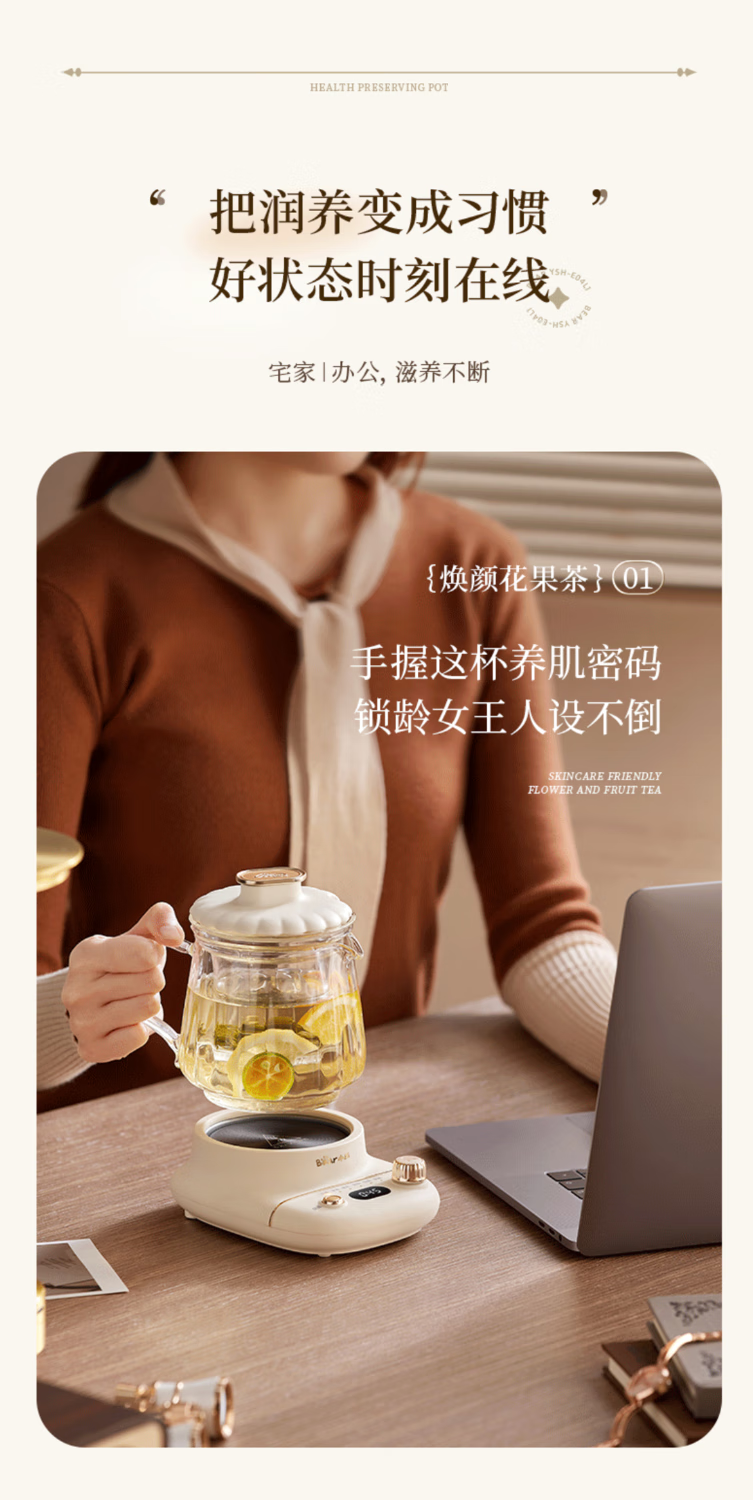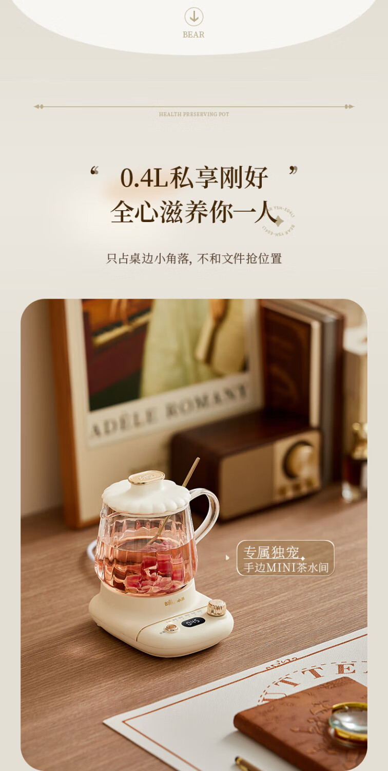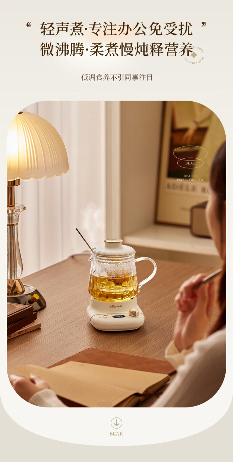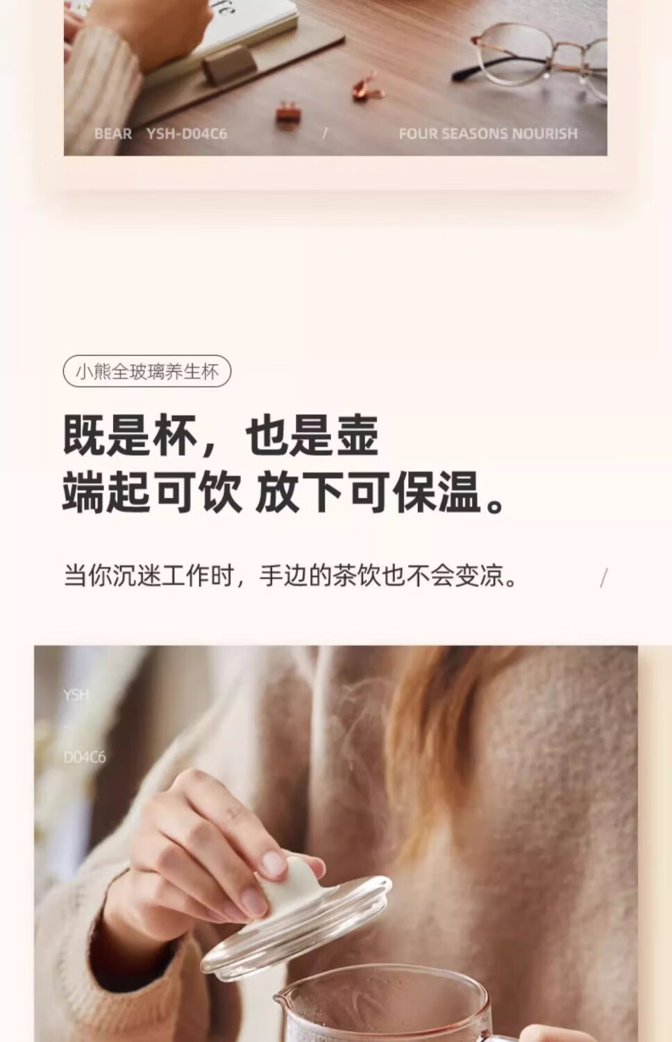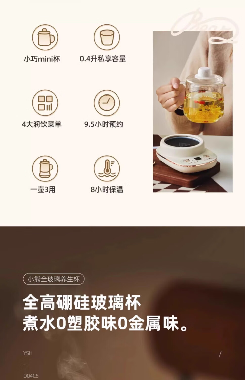 Little Bear YSH-D04C6 Portable Health Pot Office Mini Small 0.4L Tea Maker Glass Home Health Cup Little Bear (YSH-D04C6) 0.4L