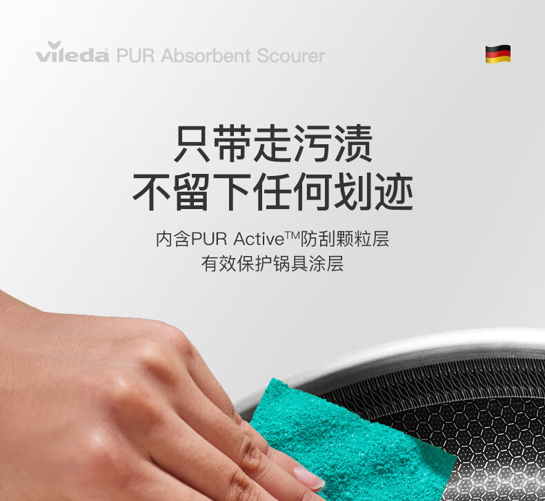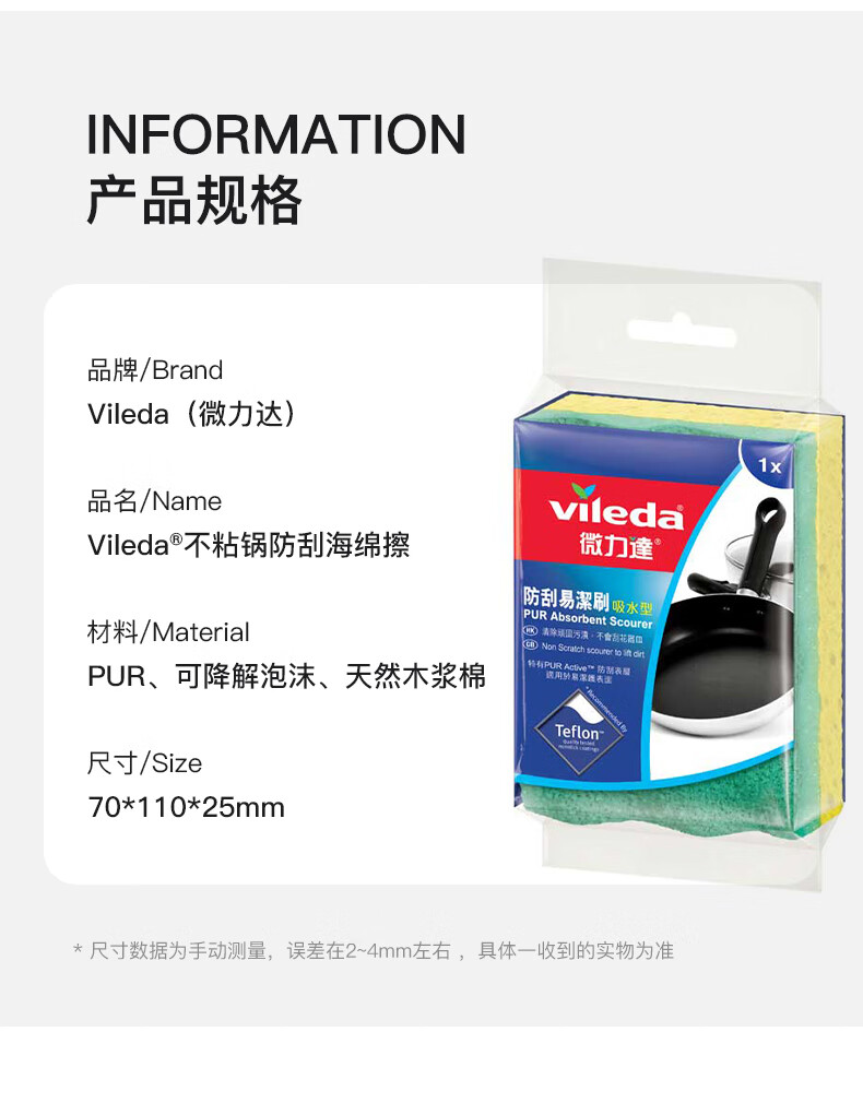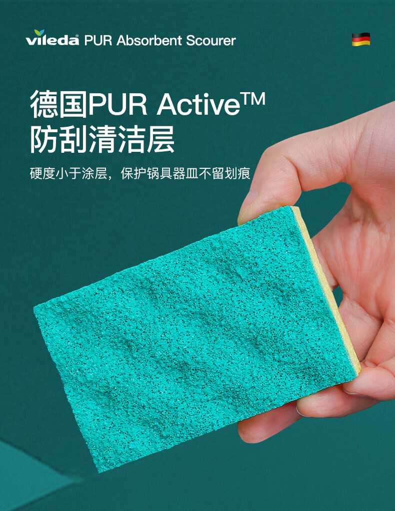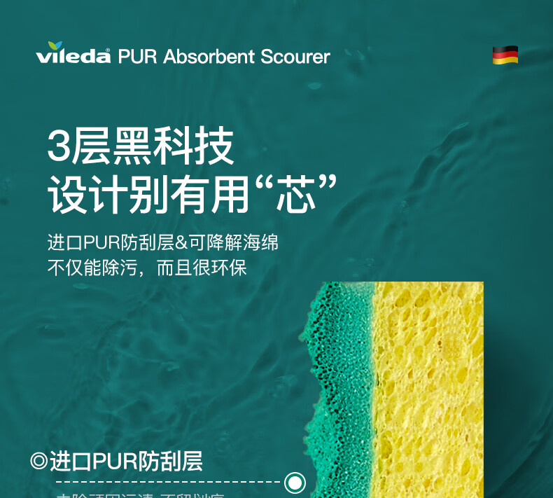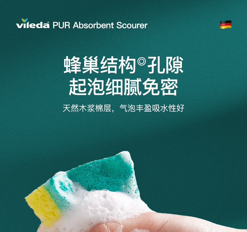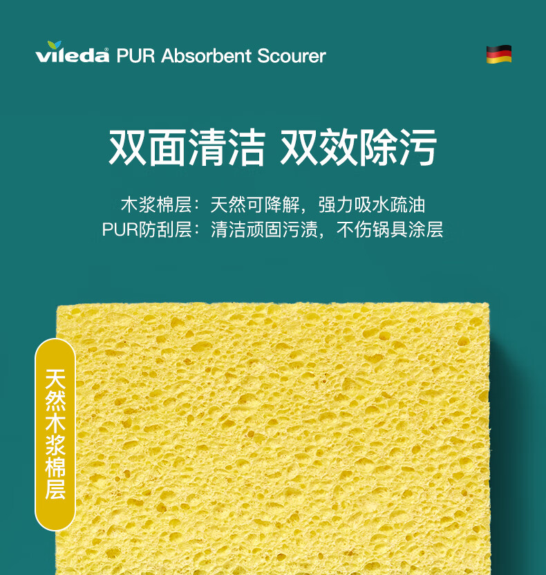 Vileda German dishwashing scouring pad kitchen special absorbent sponge for scrubbing dishes and pot rags to remove oil and stains German brand absorbent type 1 package