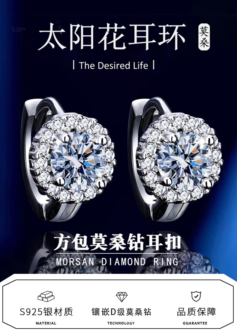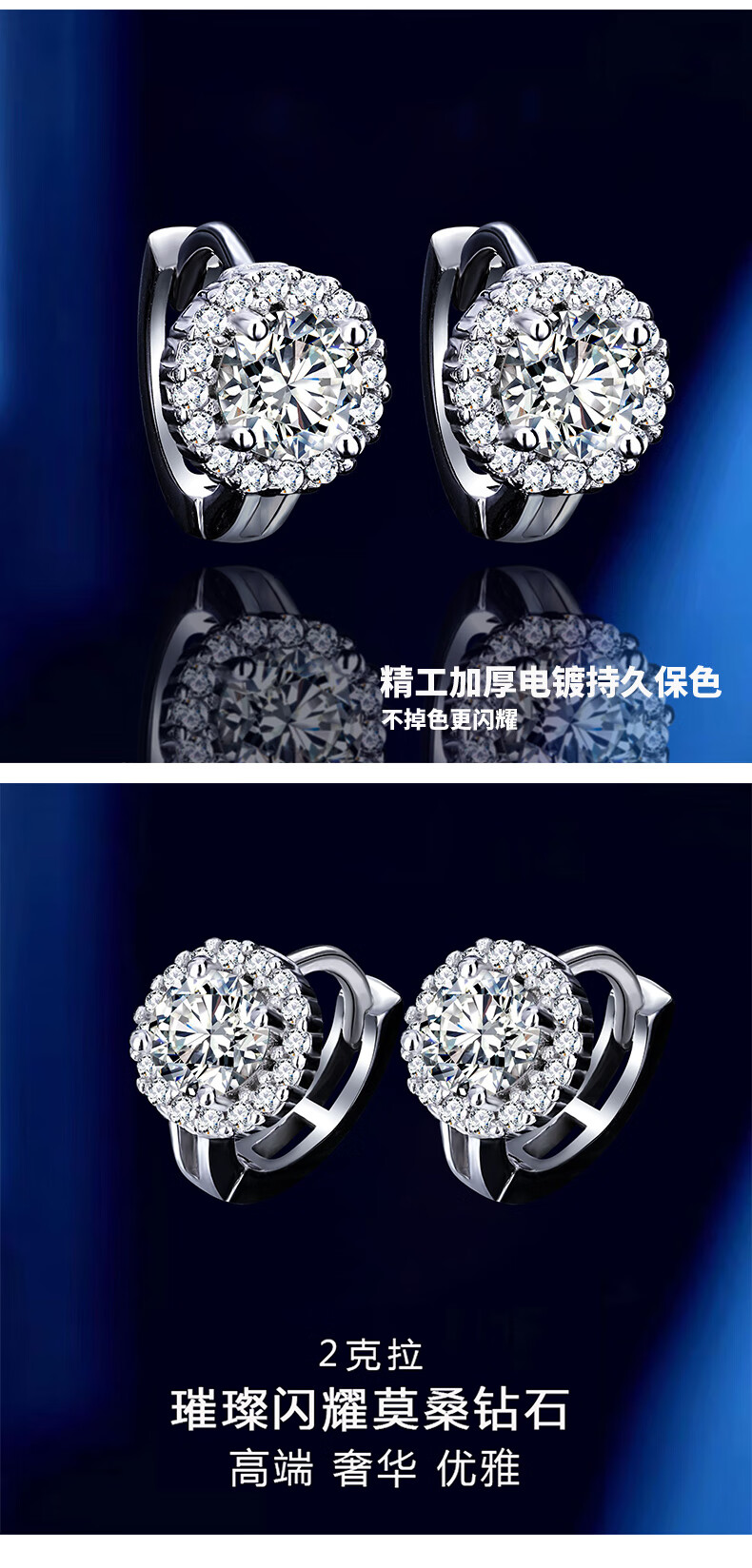 Fashionable Moissanite Silver Earrings Women's Earrings Earrings Earrings Jewelry Chinese Valentine's Day Gifts for Girls, Girlfriends and Wife