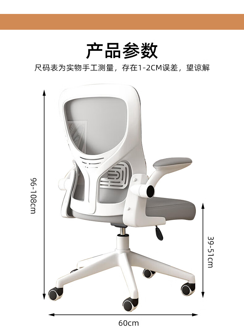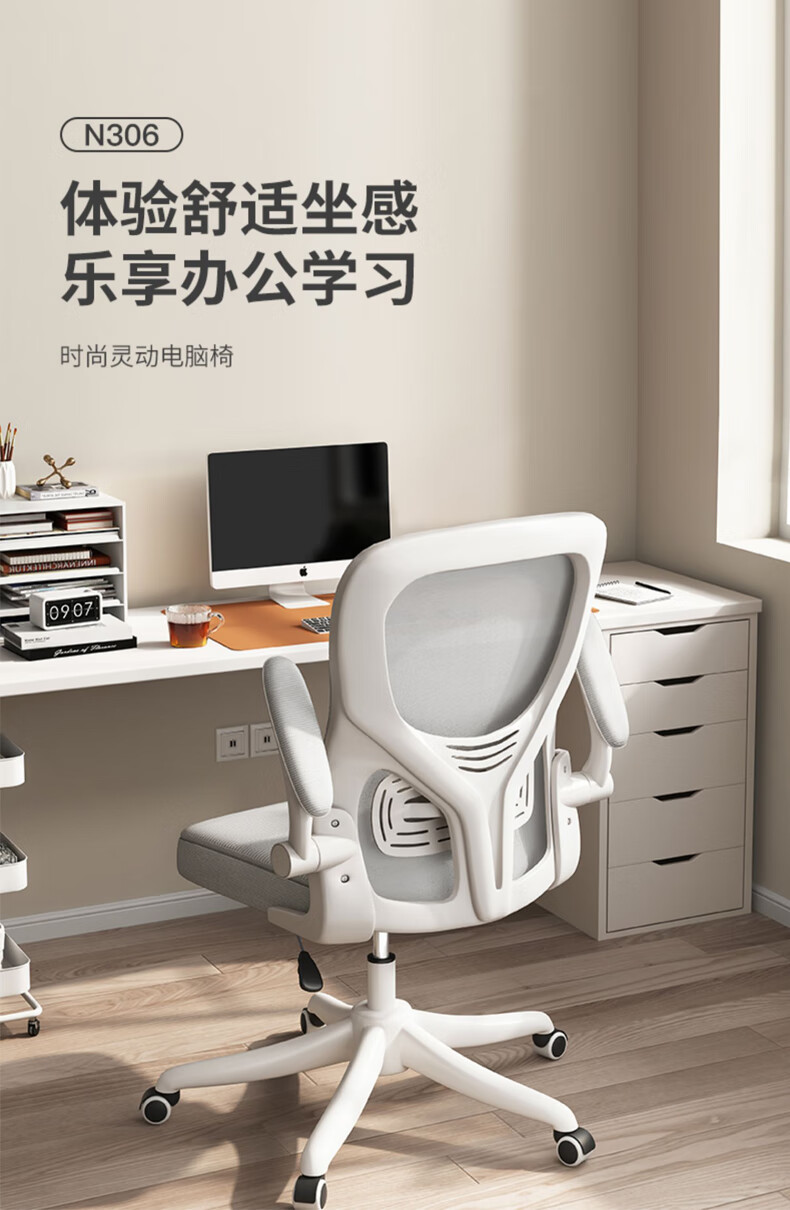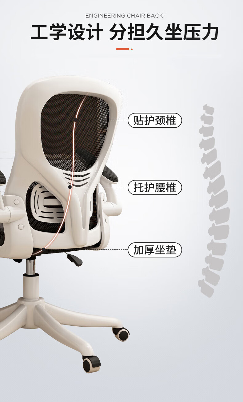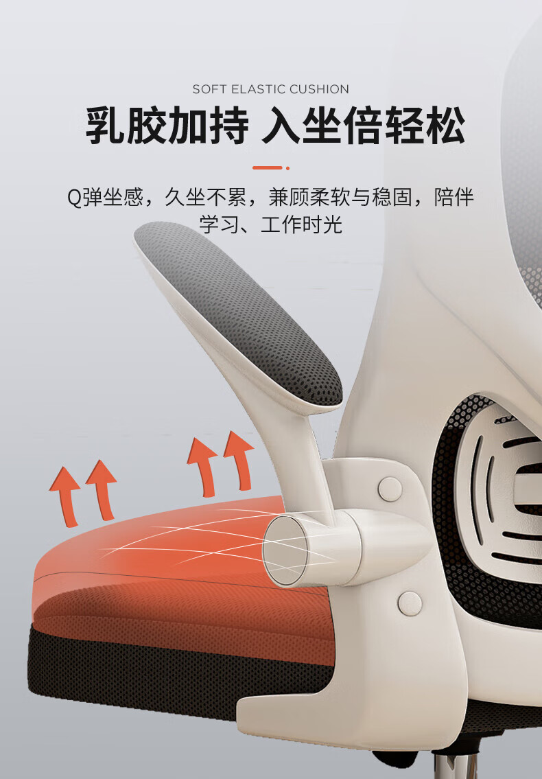 Tangneng Youpin Computer Chair Home Ergonomic Chair Office Chair Backrest Student Study Chair Writing Study Room E-Sports Game Chair Upgraded White Frame Gray Mesh + Latex