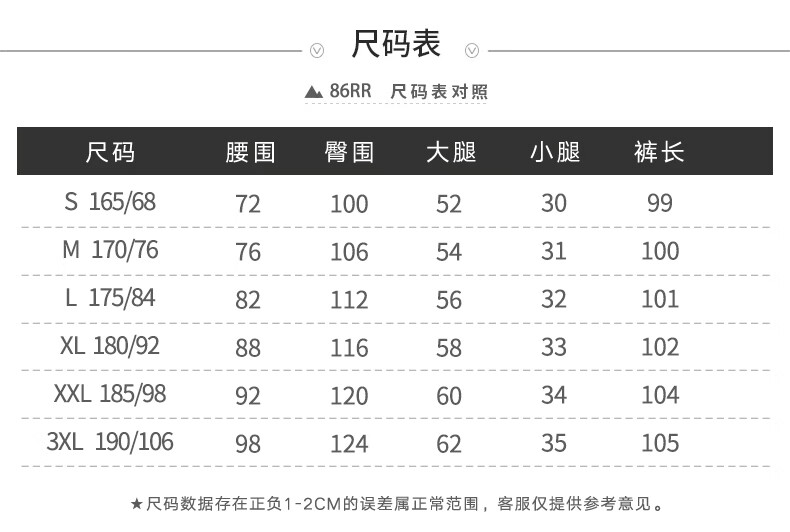 China (cm) 160-165/84-86 165-170 / 88-90 167-172 / 92-96 168-173 / 98-102 170-176 / 106-110