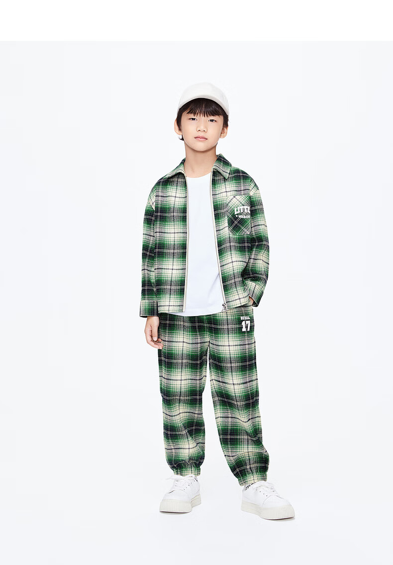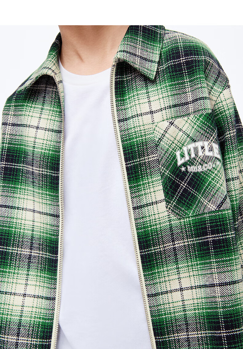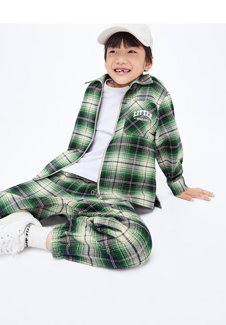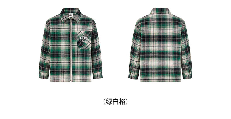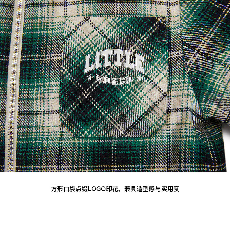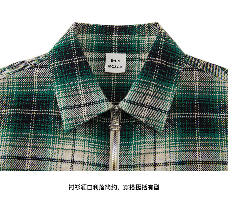 Little MO&Co. Children's clothing spring new style boys' pure cotton plaid long-sleeved shirt zipper jacket green and white plaid 120 120/60