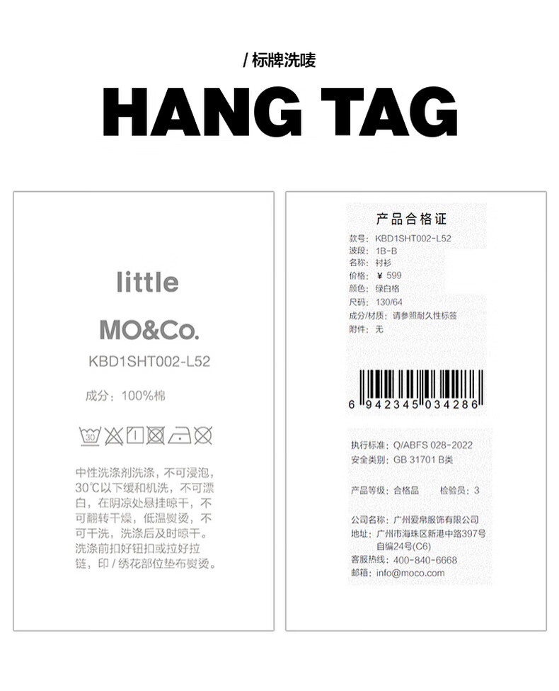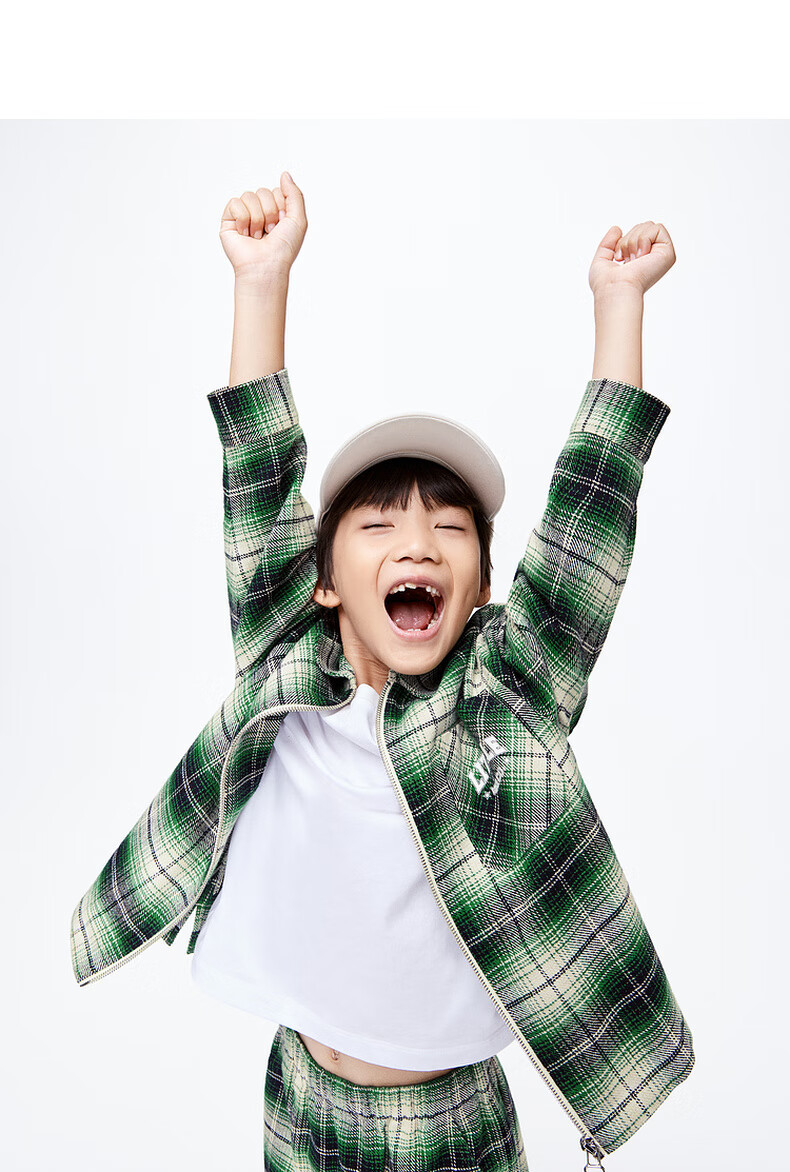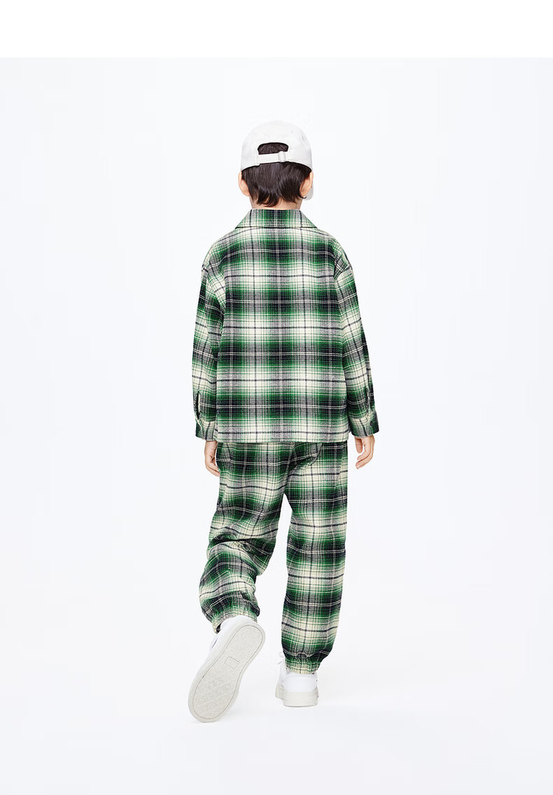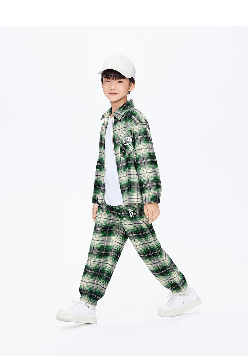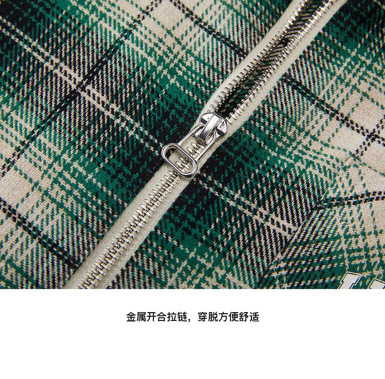 Little MO&Co. Children's clothing spring new style boys' pure cotton plaid long-sleeved shirt zipper jacket green and white plaid 120 120/60