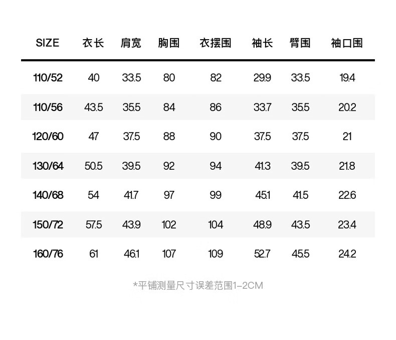 China (cm) 160-165/84-86 165-170 / 88-90 167-172 / 92-96 168-173 / 98-102 170-176 / 106-110