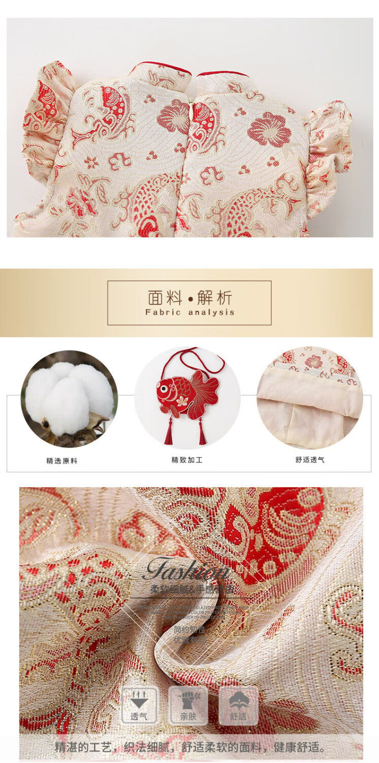 Girls' dress, princess dress, girl's 1 year old, new baby girl's week dress, autumn and summer clothes, pink Chinese Hanfu skirt - with small fish shoulder bag 90 1-2 years old, 18-23 Jin Jin is equal to 0.5 kg