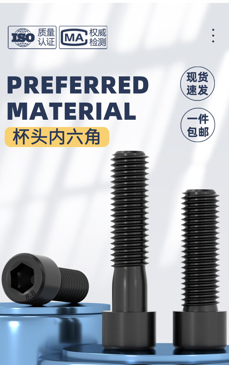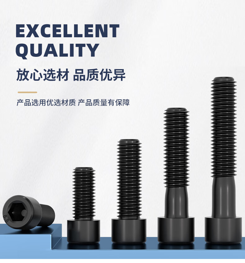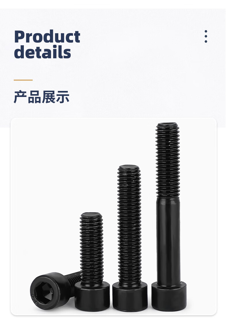 Fengji Black Grade 8.8 Hexagonal Screw Cup Head Hexagonal Bolt M3M4M5M6M8M10M12M16M24mm M4*12 Full Thread (50 pieces)