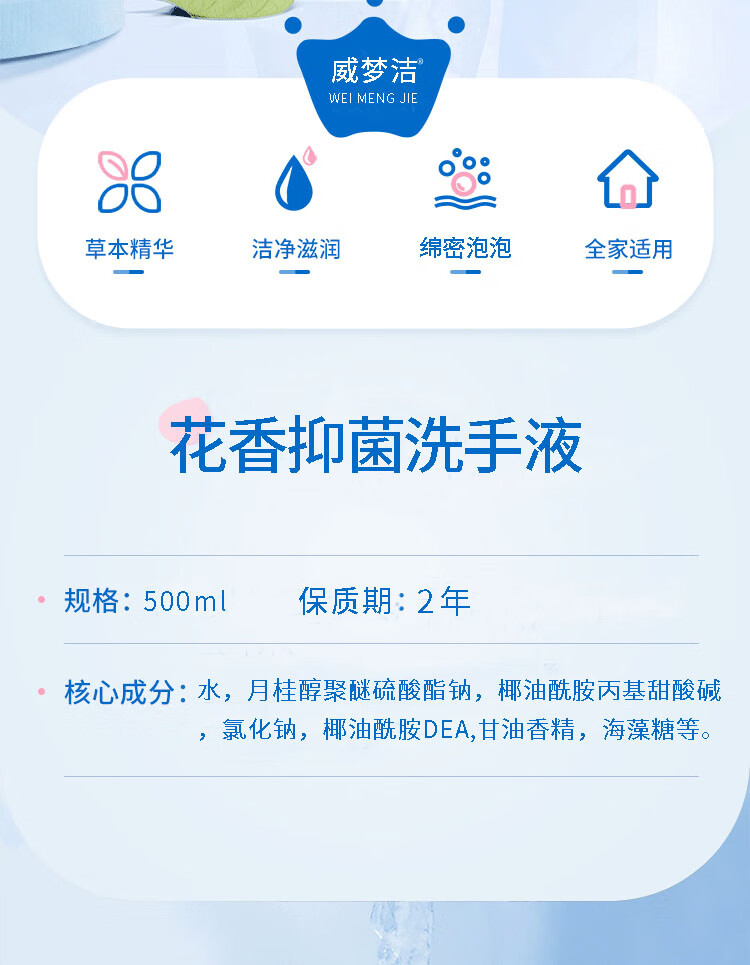 Wei Mengjie Hand Sanitizer Antibacterial, Mild, Moisturizing, Clean, Decontamination, Easy to Rinse, Baby, Children, Adults, Home Portable, Non-Medical 500ml 1 Bottle - Antibacterial Hand Sanitizer x1 Bottle