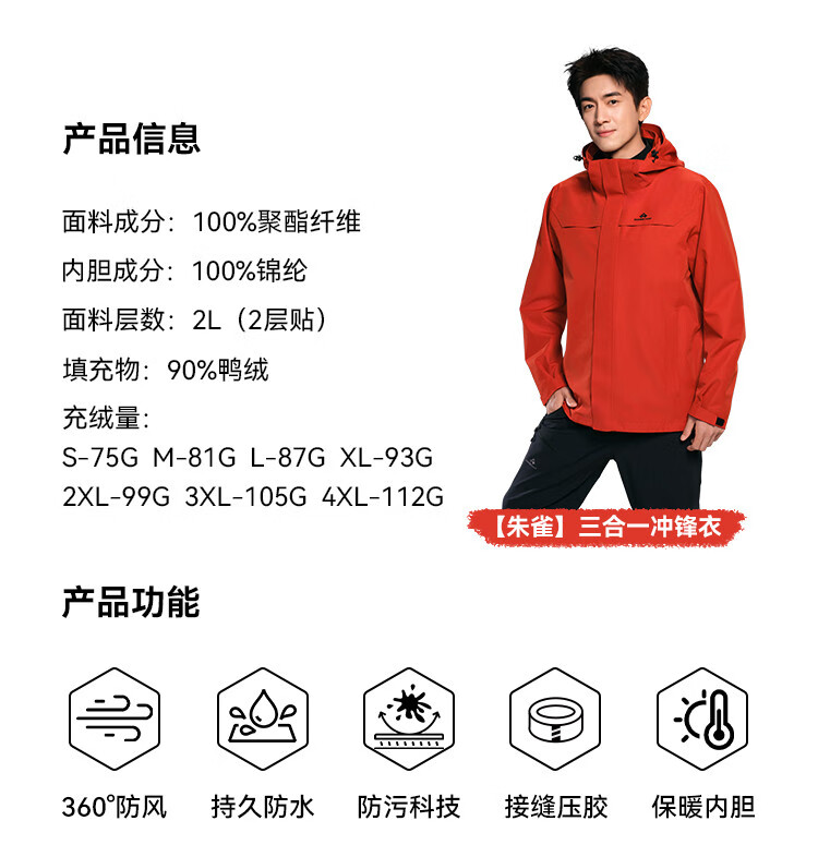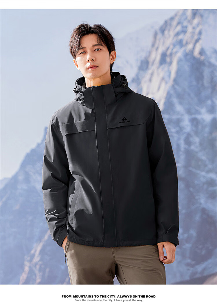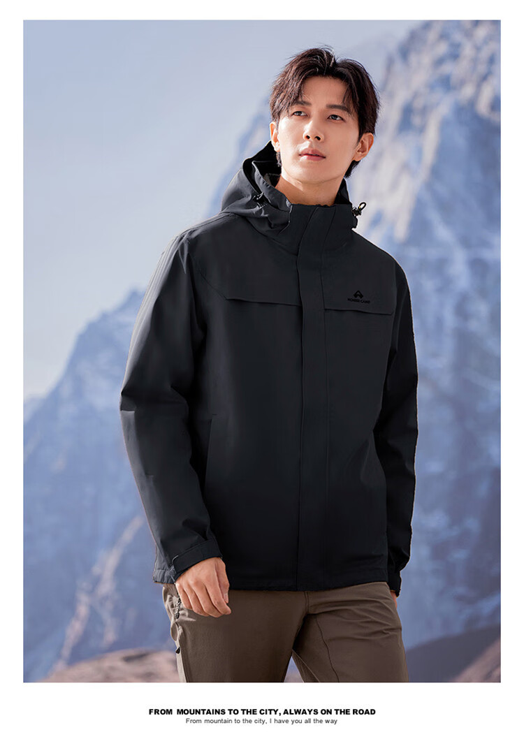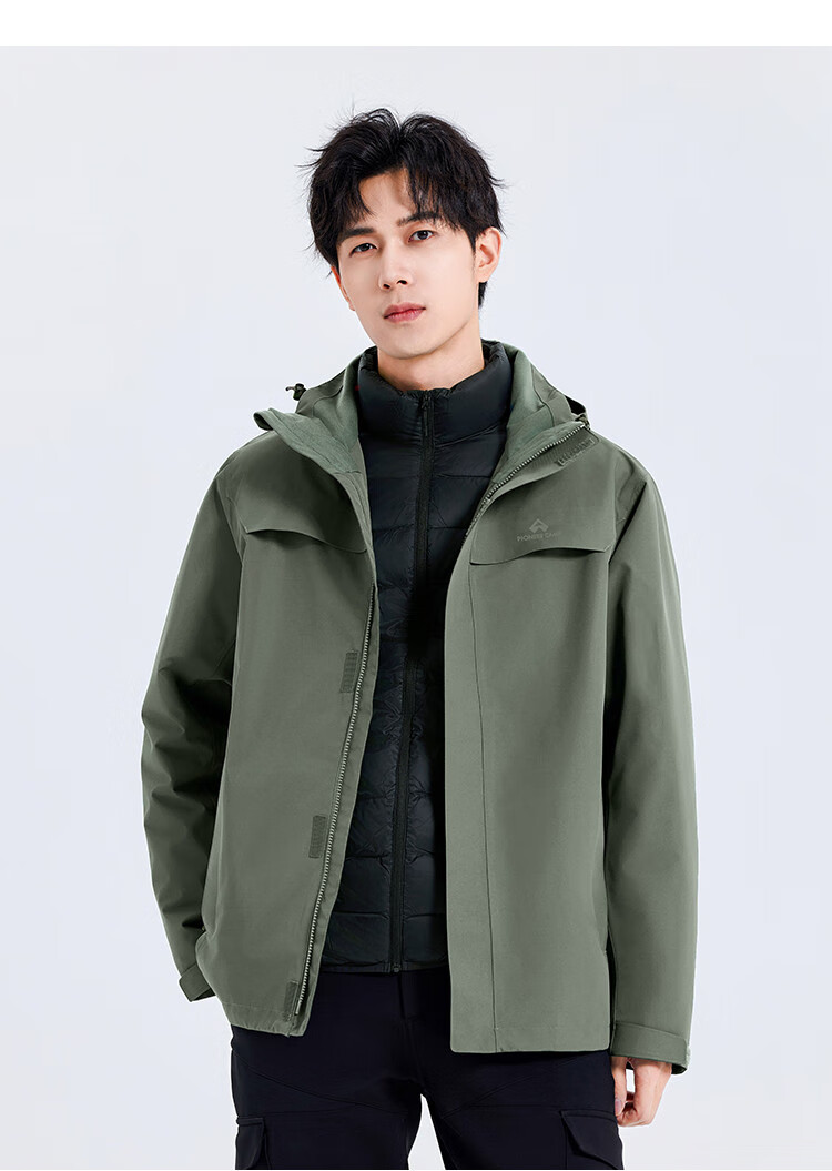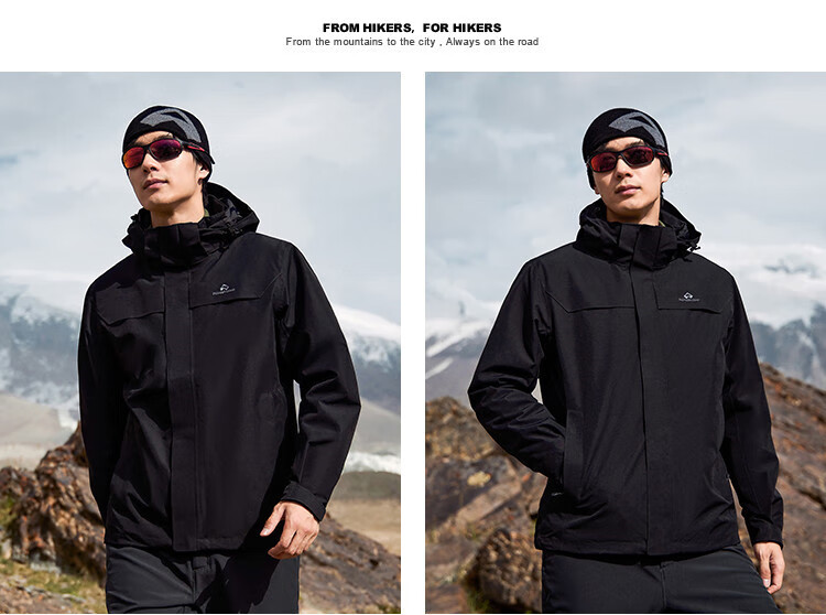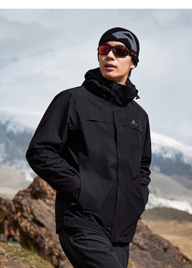 Pathfinder Suzaku Jacket Three-in-One Down Liner Men's Outdoor Heavy Rain Level Windproof and Waterproof Winter Warm Jacket Black Down Two-piece Set L