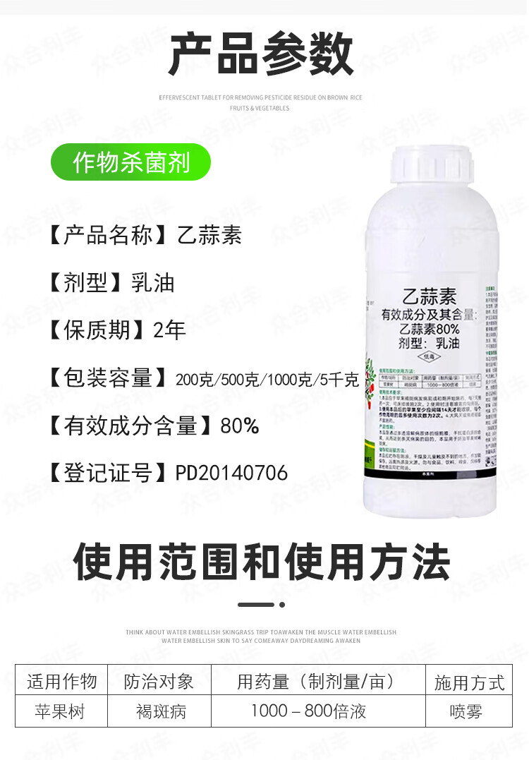 Pesticide 80% Acetyl Allicin EC Pesticide Fungicide Collection Apple Tree Brown Spot Acetyl Allicin Agricultural Supplies Store 1kg