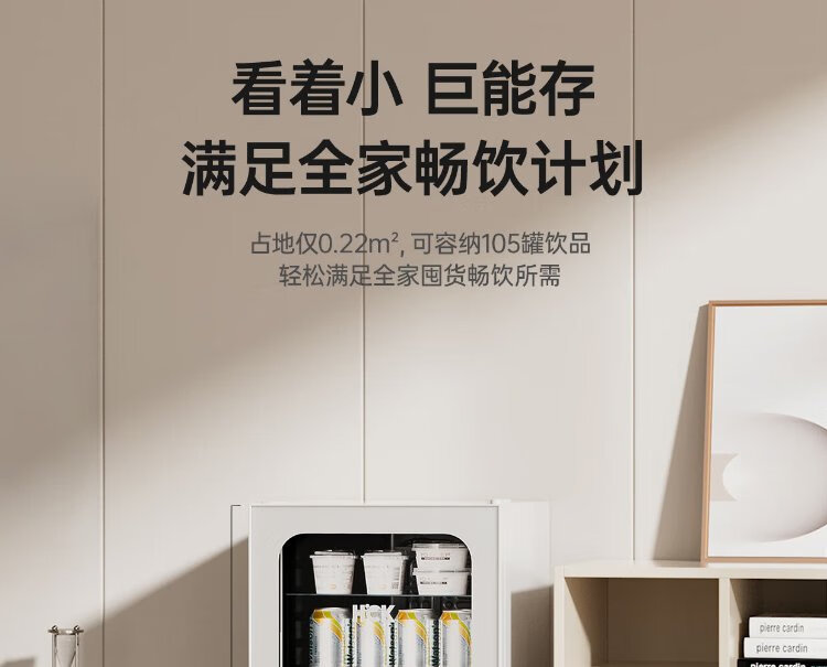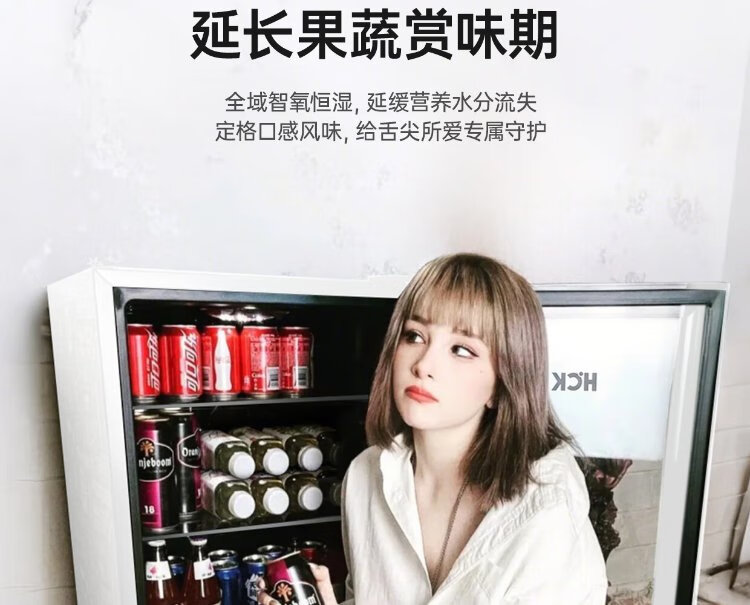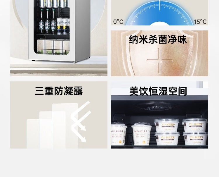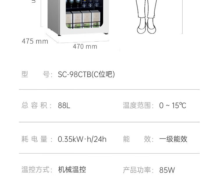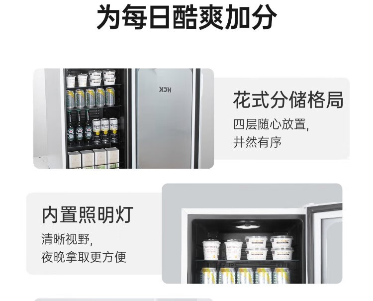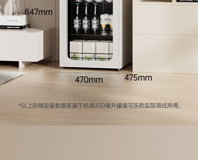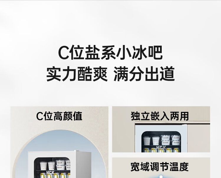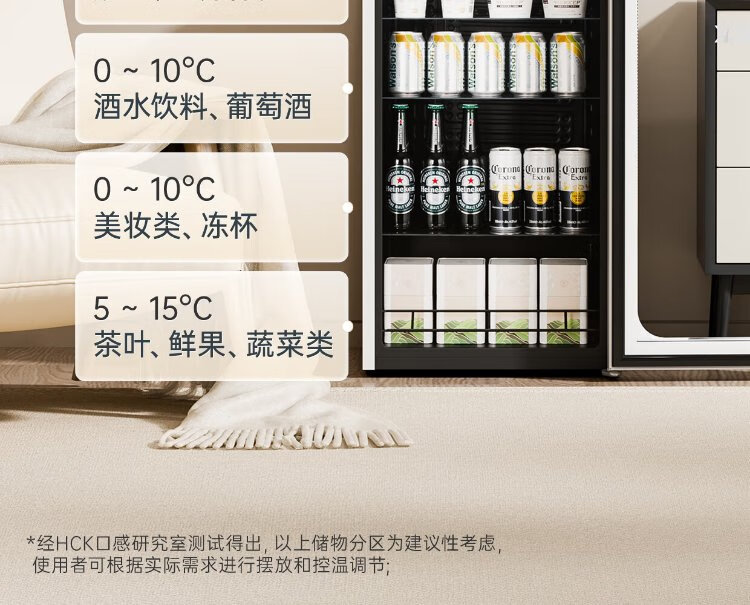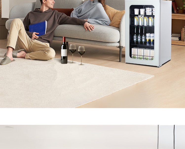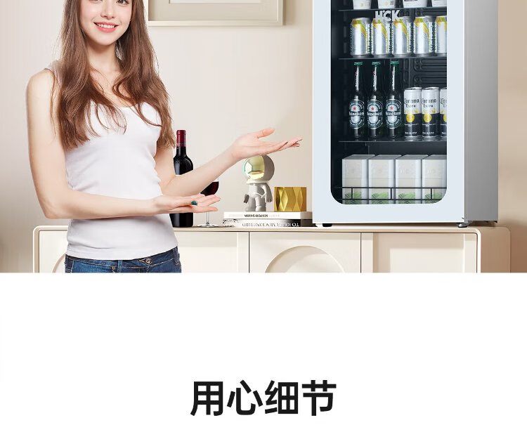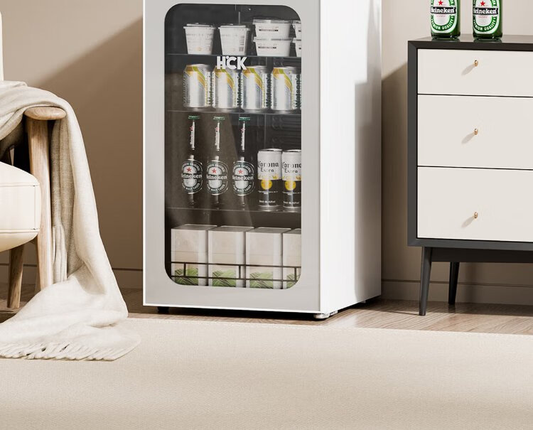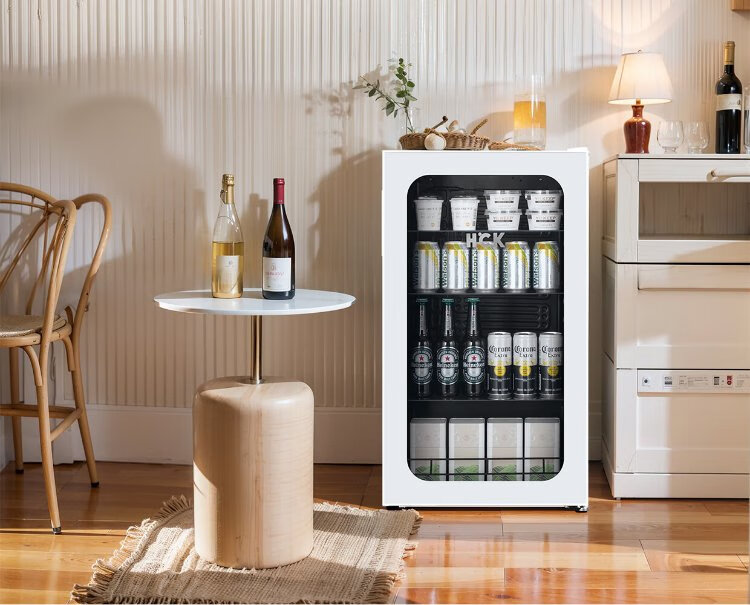 HCK Husky Ice Bar Home Island Semi-embedded Refrigerator Beverage Cabinet First Class Energy Efficiency Energy Saving Slim Glass Door Small Hotel Computer Room Ice Bar SC-98CTB White 88L