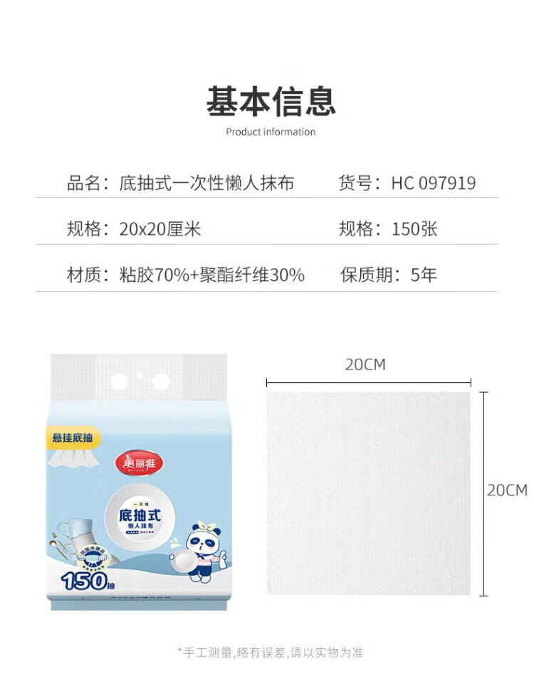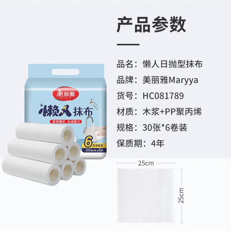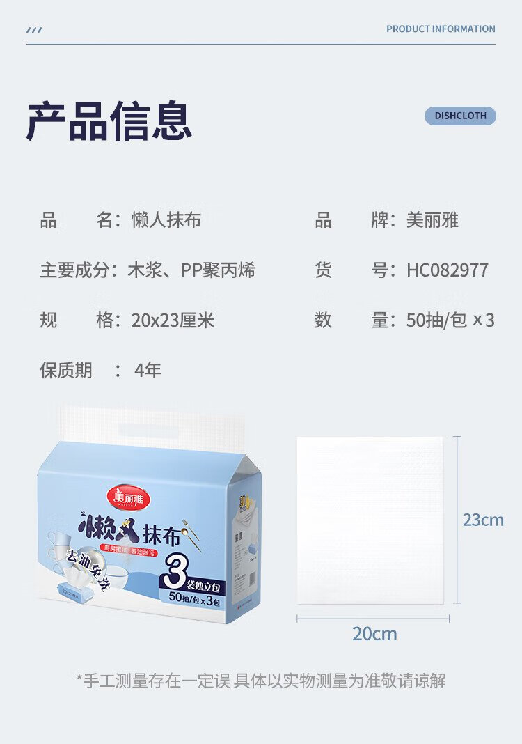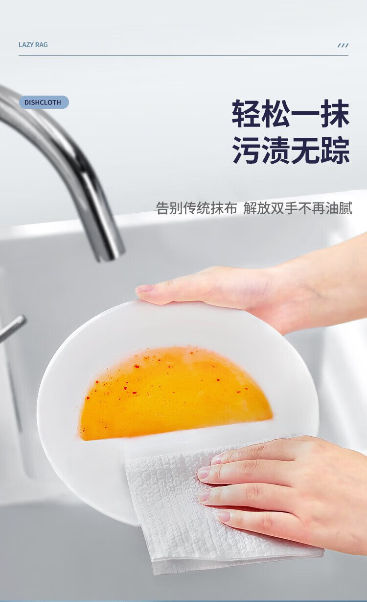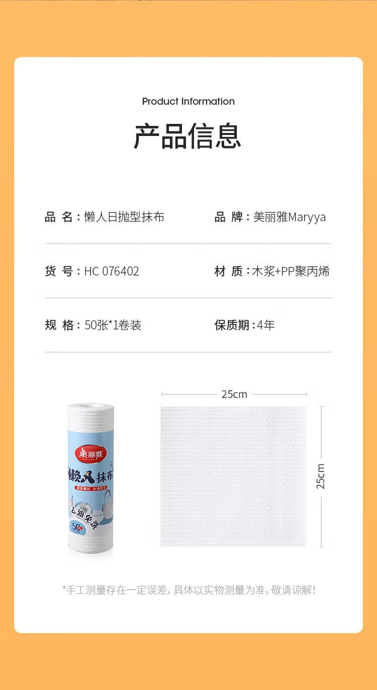 Meiya lazy rag disposable rag household kitchen towel no-wash water-absorbing oil-absorbing dish towel white-150 sheets-20cm*23cm