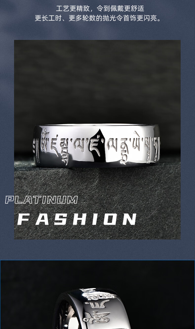 GsunG platinum men's ring PT950 yellow God of Wealth mantra ring with inner arc and atmospheric platinum wide face men's ring smooth surface wrench. Priced by gram. Contact before bidding.