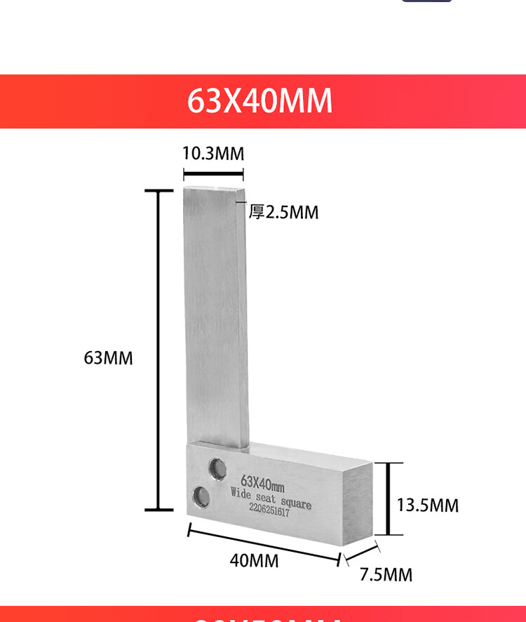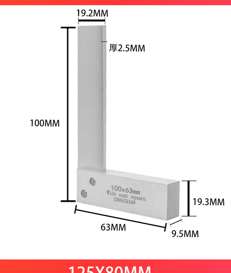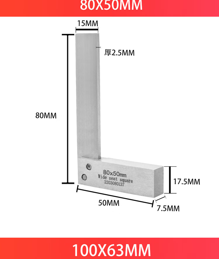 Wide seat and wide seat square stainless steel grade 1 high precision thickened L right angle 63*125*200*400*500mm wide seat square 80*50 (grade 1 precision) carbon steel