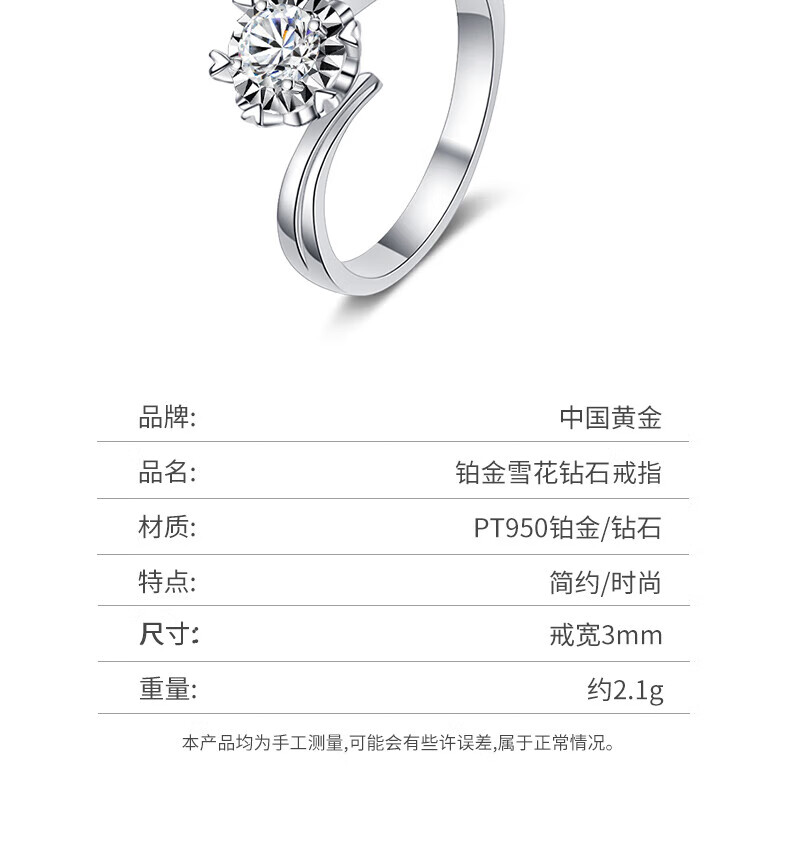 China Gold (CHINA GOLD) platinum ring women's diamond platinum diamond ring order wedding ring birthday gift for girlfriend and wife wedding anniversary platinum snowflake diamond ring