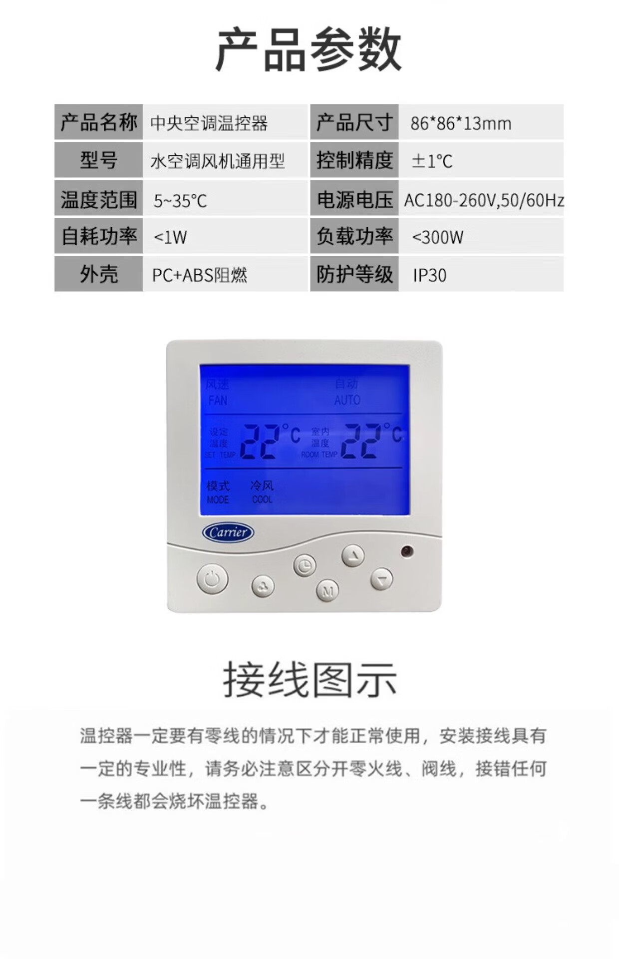 Carrier central air conditioning thermostat water fan coil line LCD controller panel three-speed remote control switch 805 Carrier