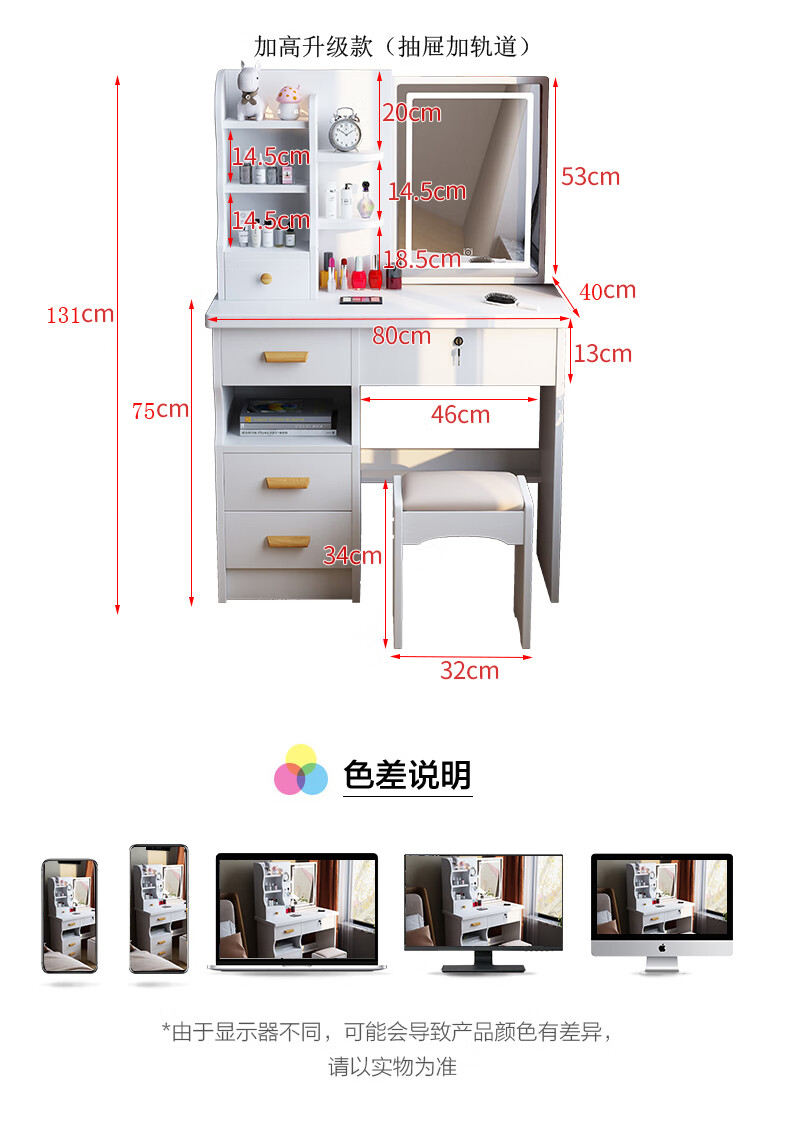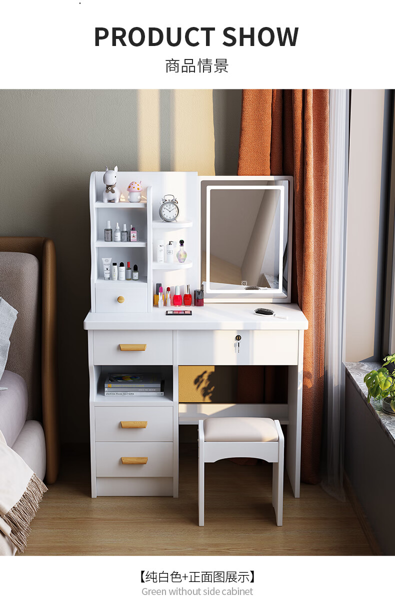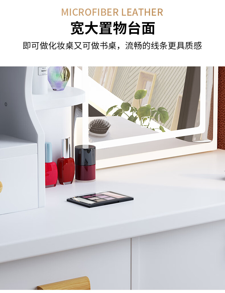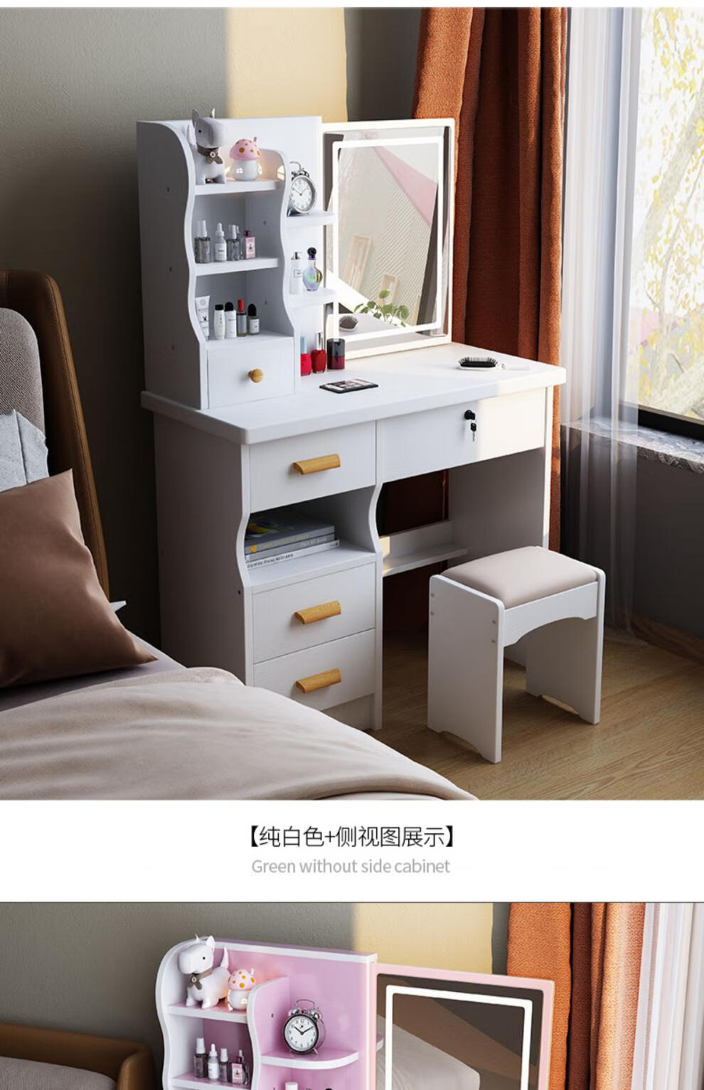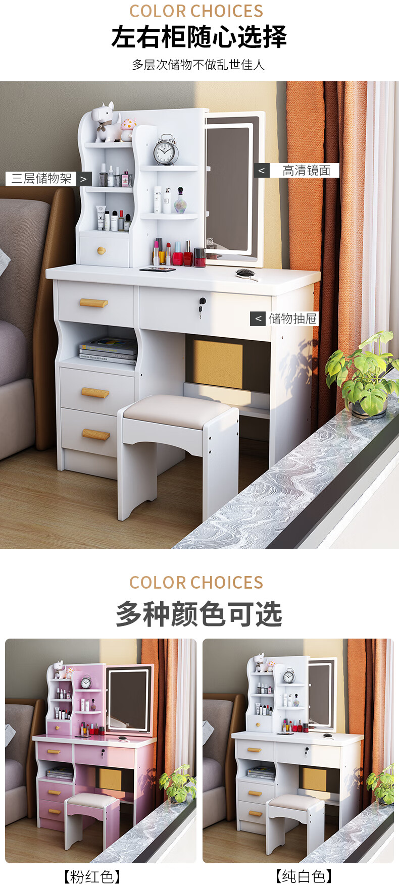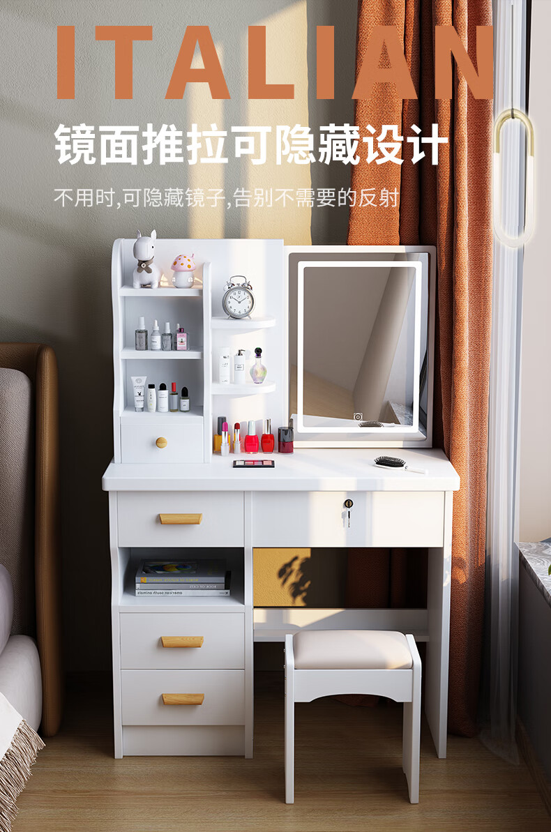 Zhongen dressing table hidden mirror push-pull bedroom modern minimalist dressing table desk integrated internet celebrity ins style with lock warm white left cabinet without light hidden mirror gift stool assembly x video to install by yourself