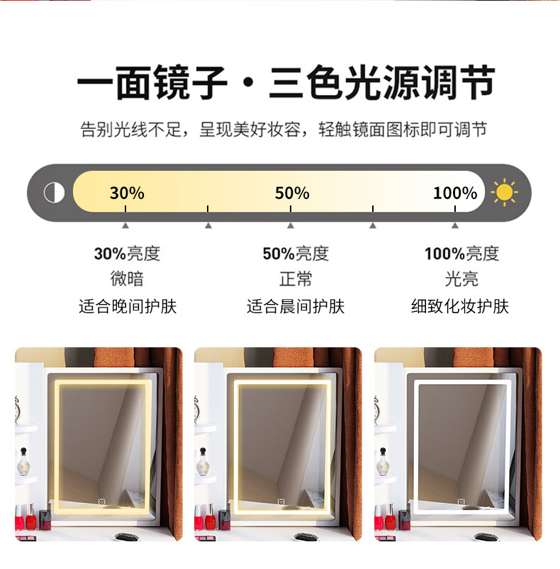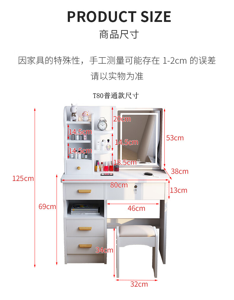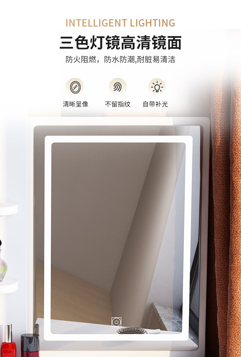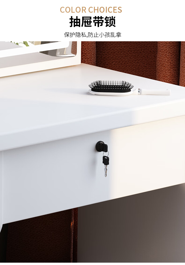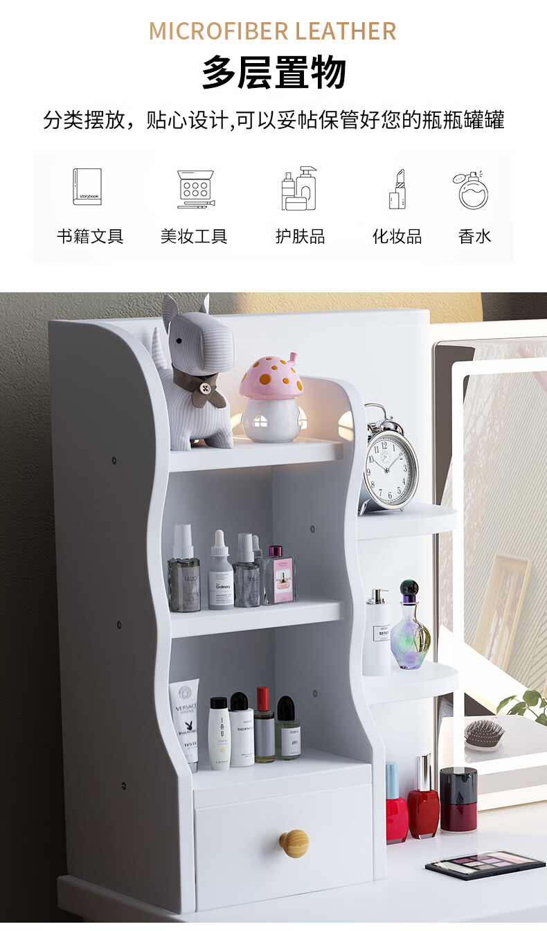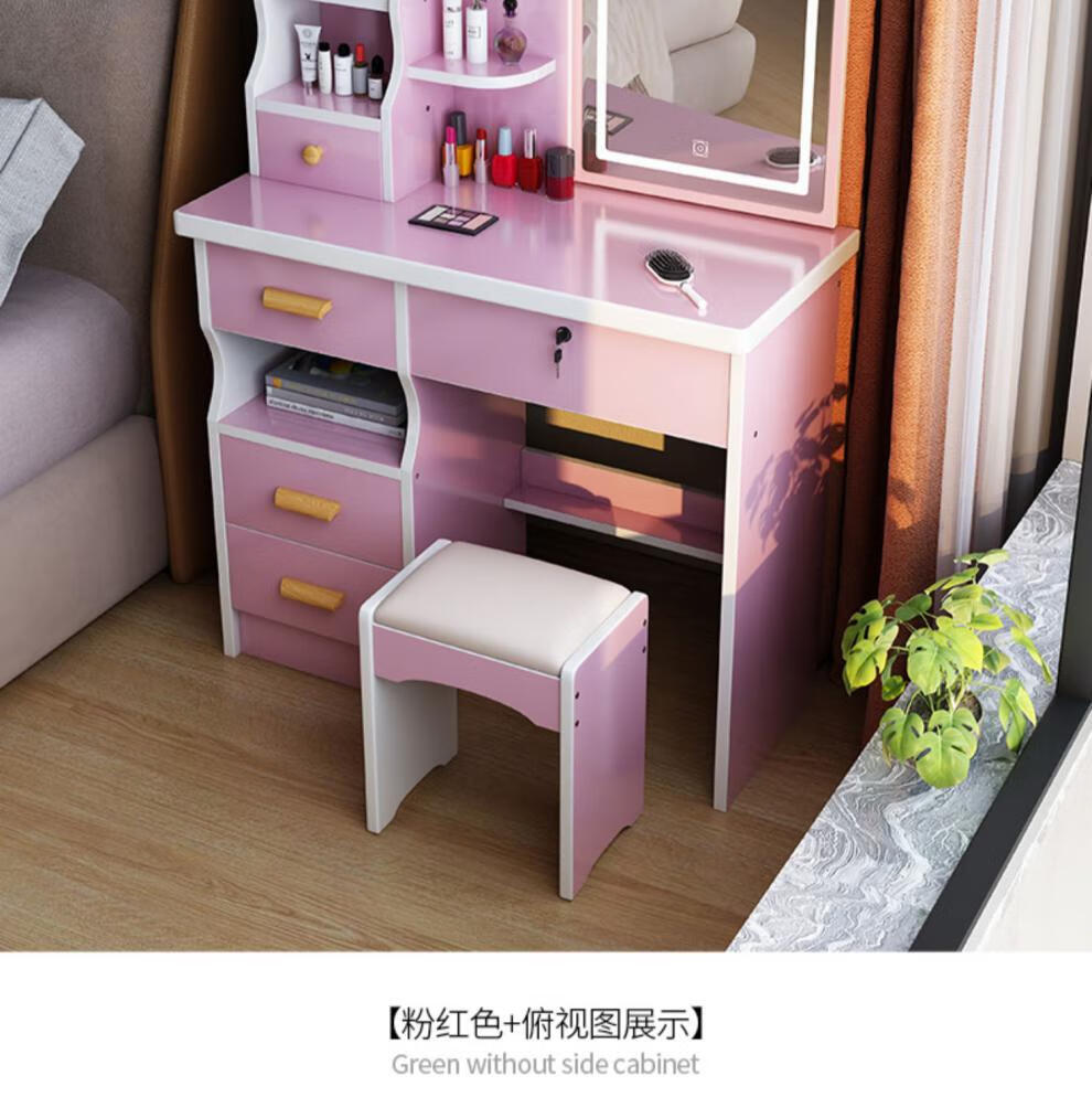 Zhongen dressing table hidden mirror push-pull bedroom modern minimalist dressing table desk integrated internet celebrity ins style with lock warm white left cabinet without light hidden mirror gift stool assembly x video to install by yourself