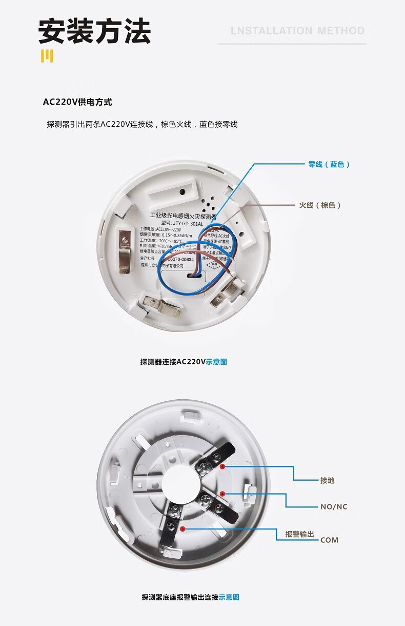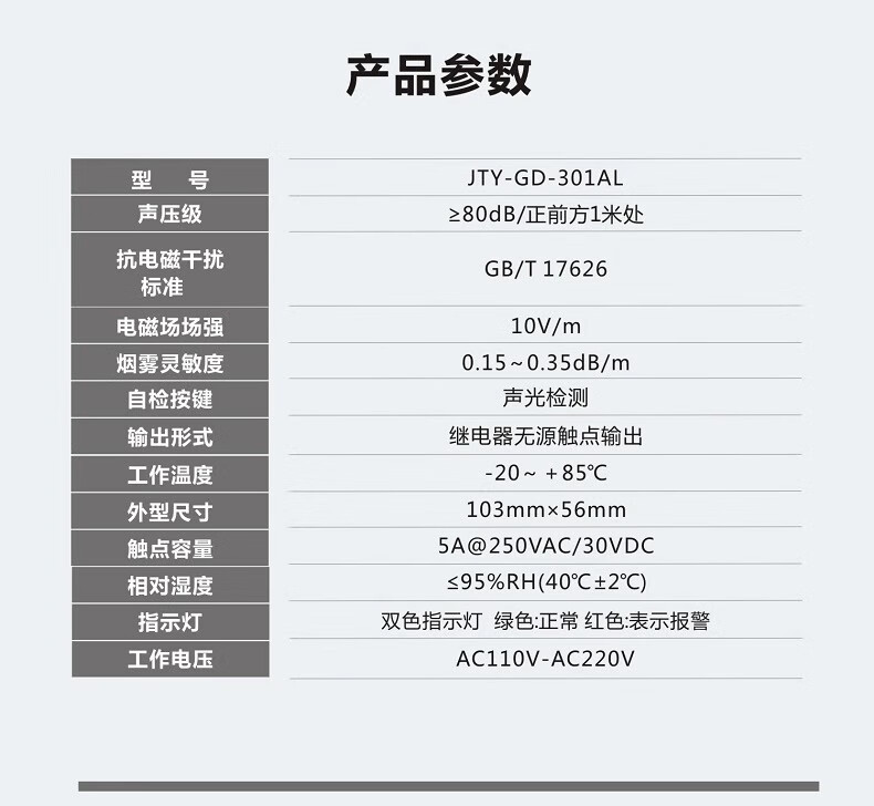 Nuohengtai JTY-GD-301AL AC AC220V smoke sensor dry contact smoke sensor anti-interference strong switching signal output