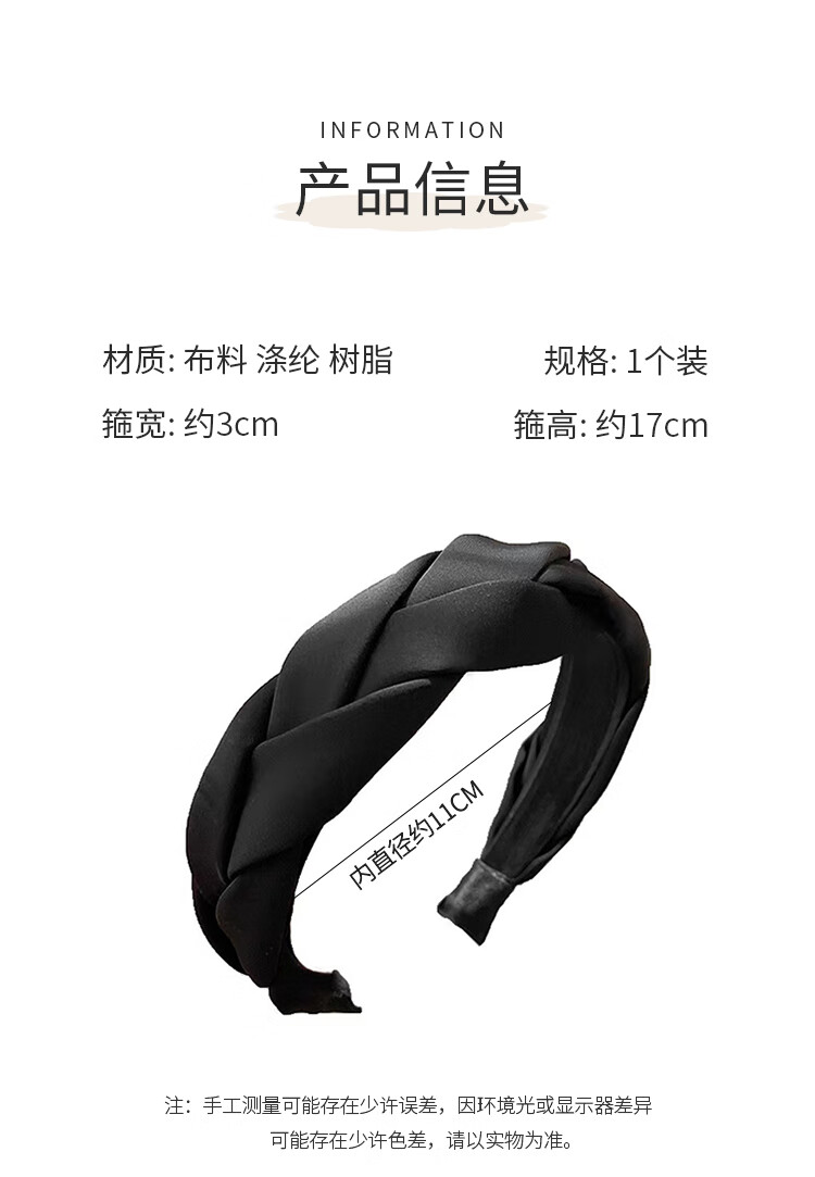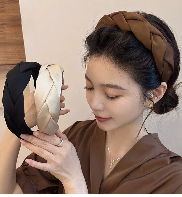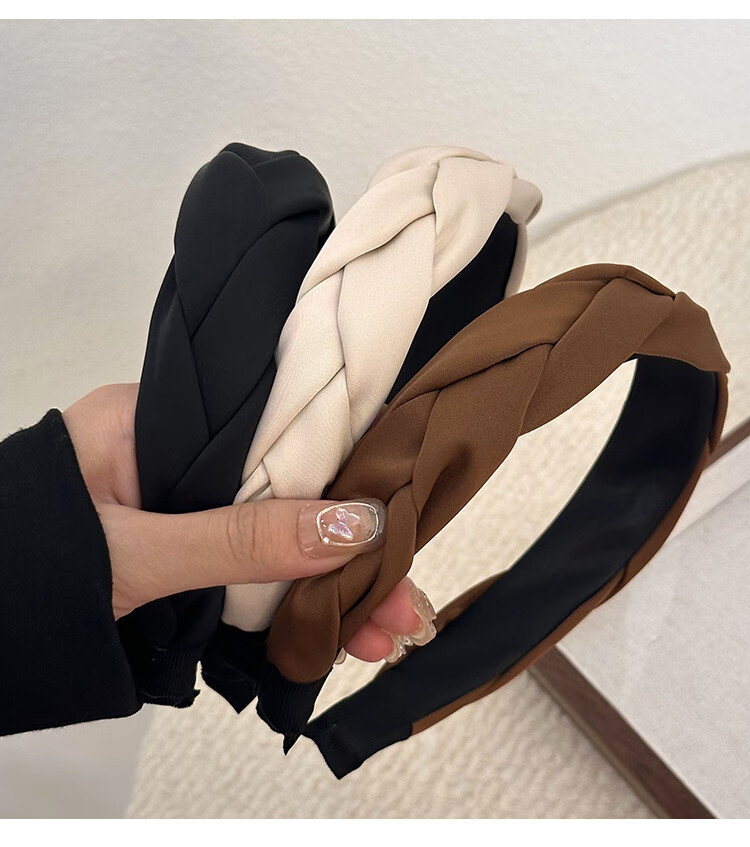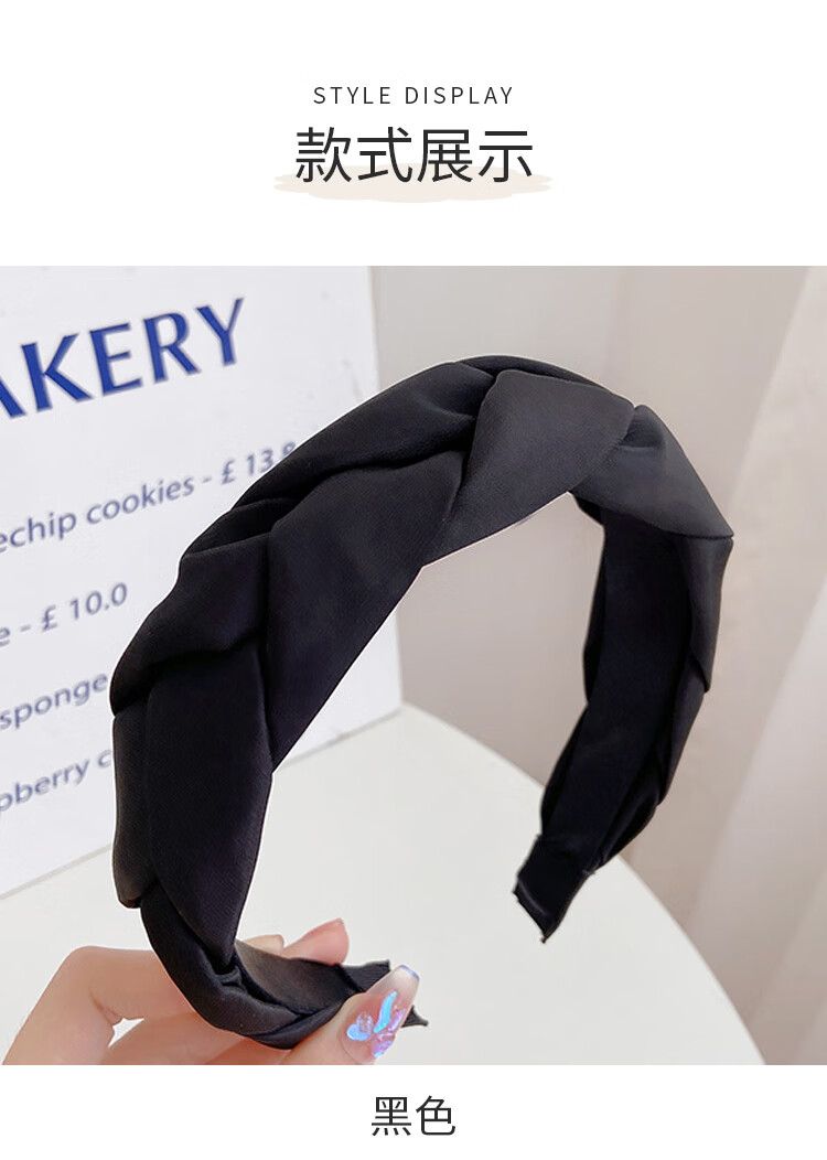 Feihua headband for women, high-end, wide-brimmed headband for going out, forged braid, high skull headband, face-showing small spring hair accessory, black 1 piece