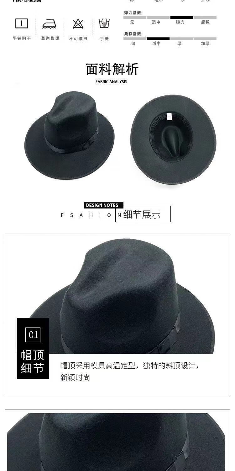 CHIC DOLL Top Hat Gentleman Hat Men's Shanghai Beach Xu Wenqiang Large Brim Michael Jackson Stage Performance Jazz Hat Black M (56-58cm)