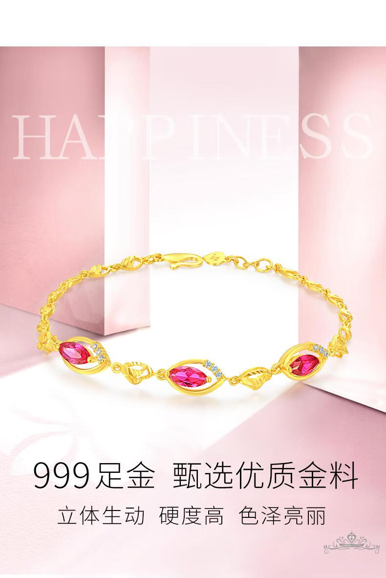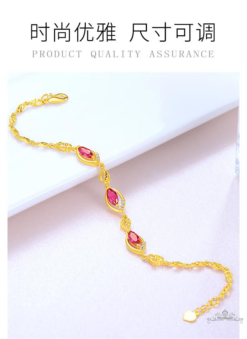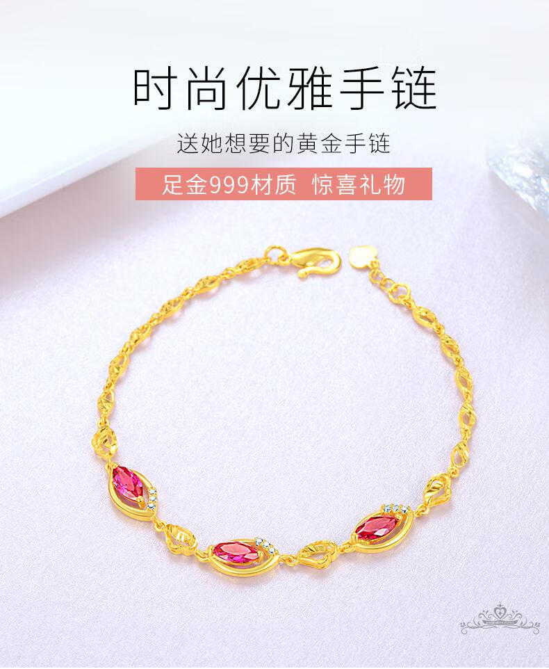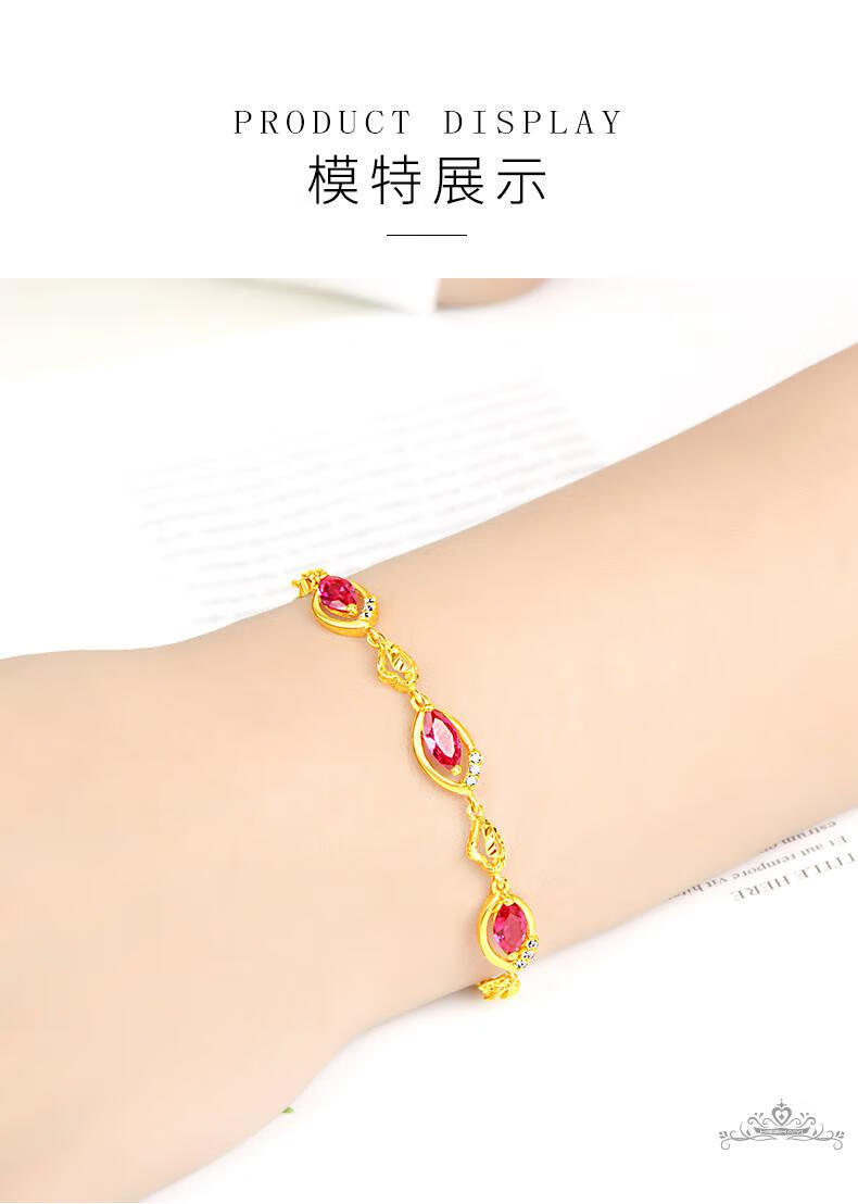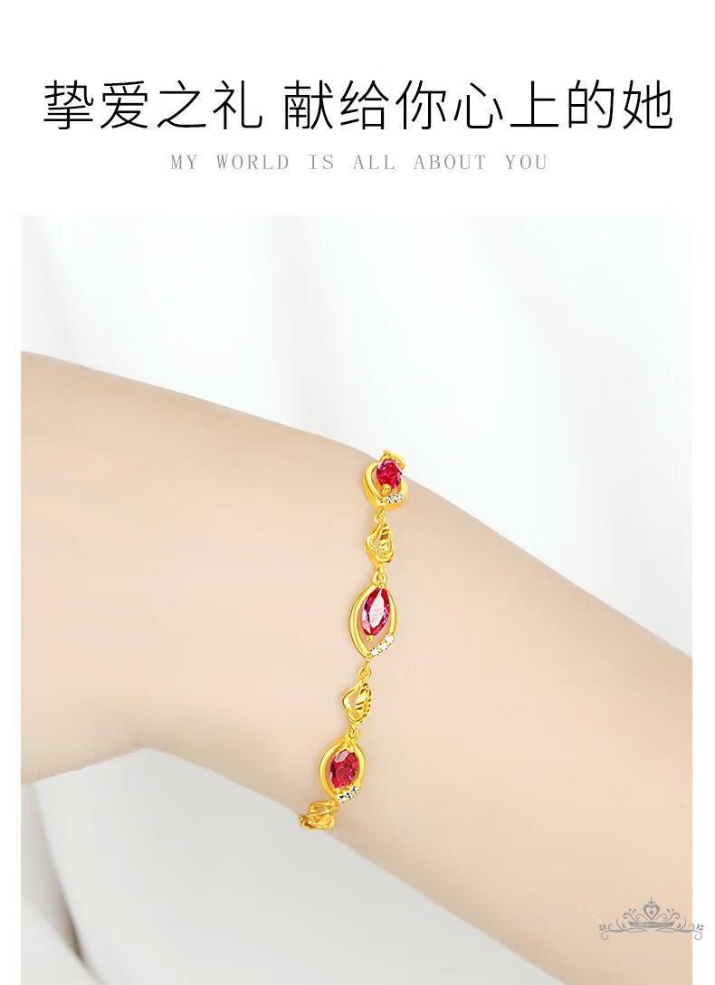 Haikai bracelet women's high-end red gem luxury jewelry 24 gold K bracelet Chinese Valentine's Day birthday gift 24 gold ruby bracelet