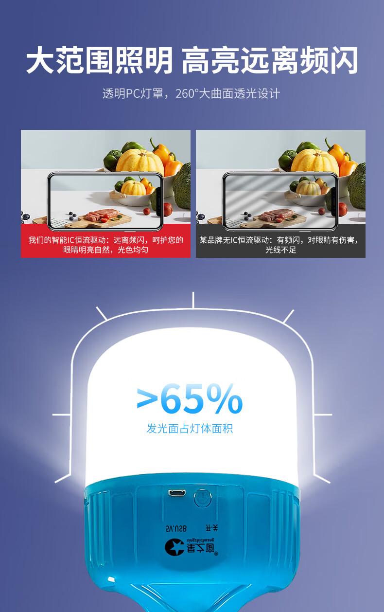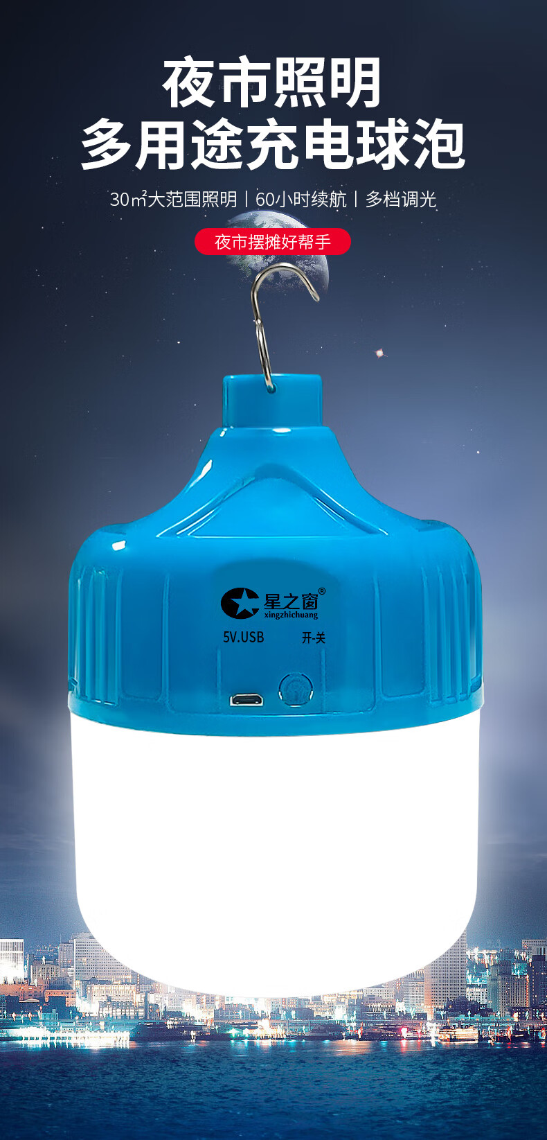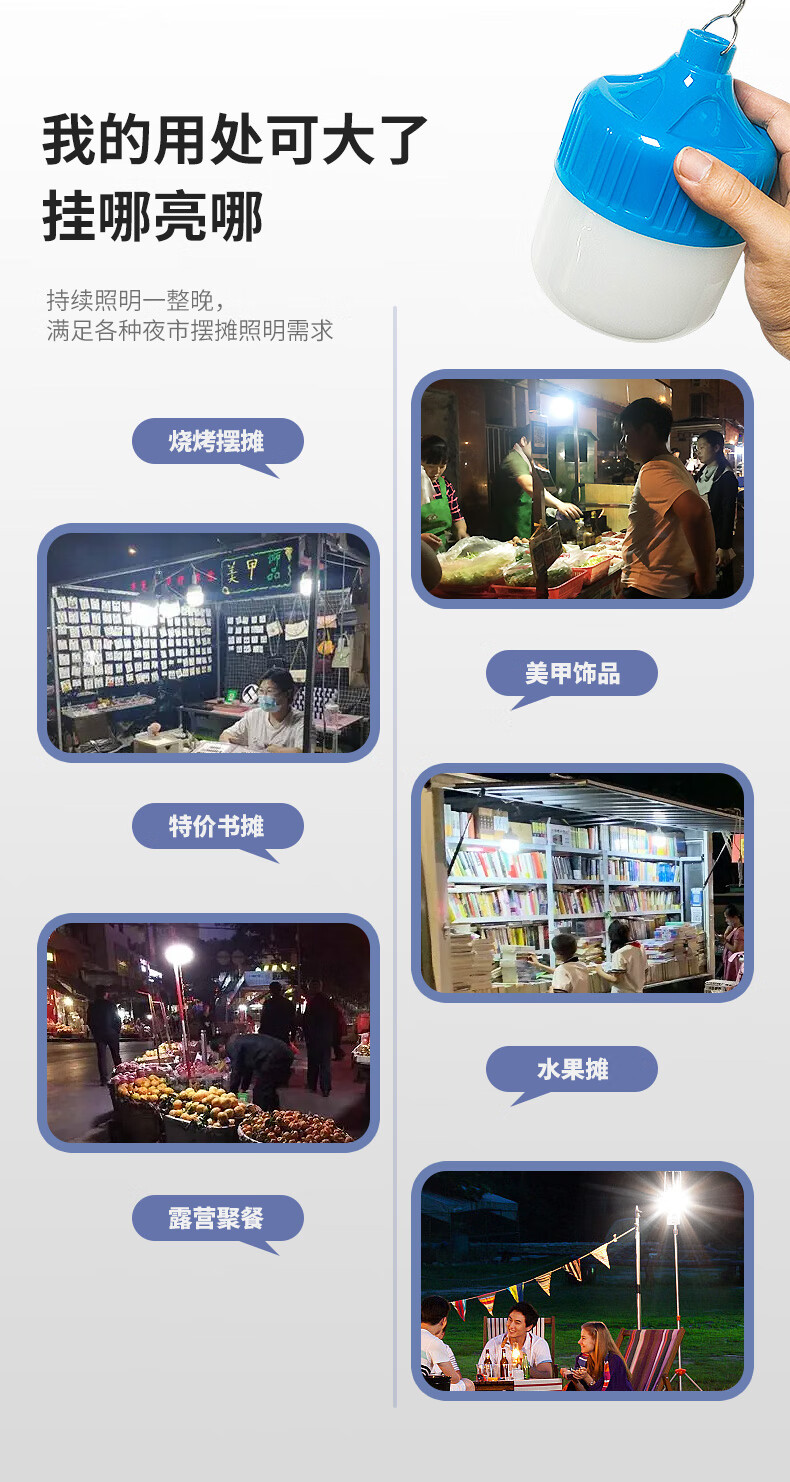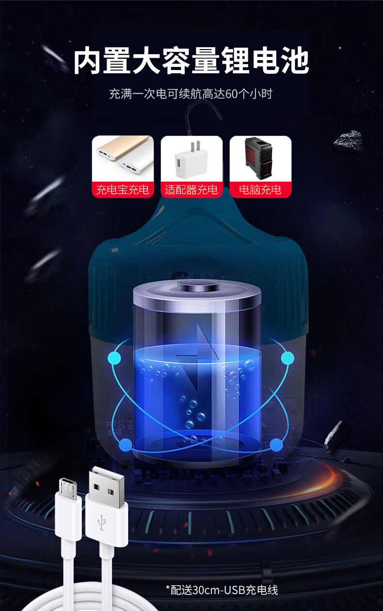 Yunhemei USB rechargeable light bulb power outage emergency lighting household mobile ultra-bright outdoor LED night market stall lamp special offer 150WD white light 30H battery life + charging