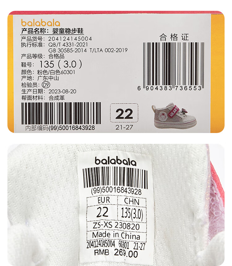 Balabala Wonderful and Cute IP Baby Stable Shoes Spring and Autumn Girls High Top Shoes Dream Pink 60301 Size 21