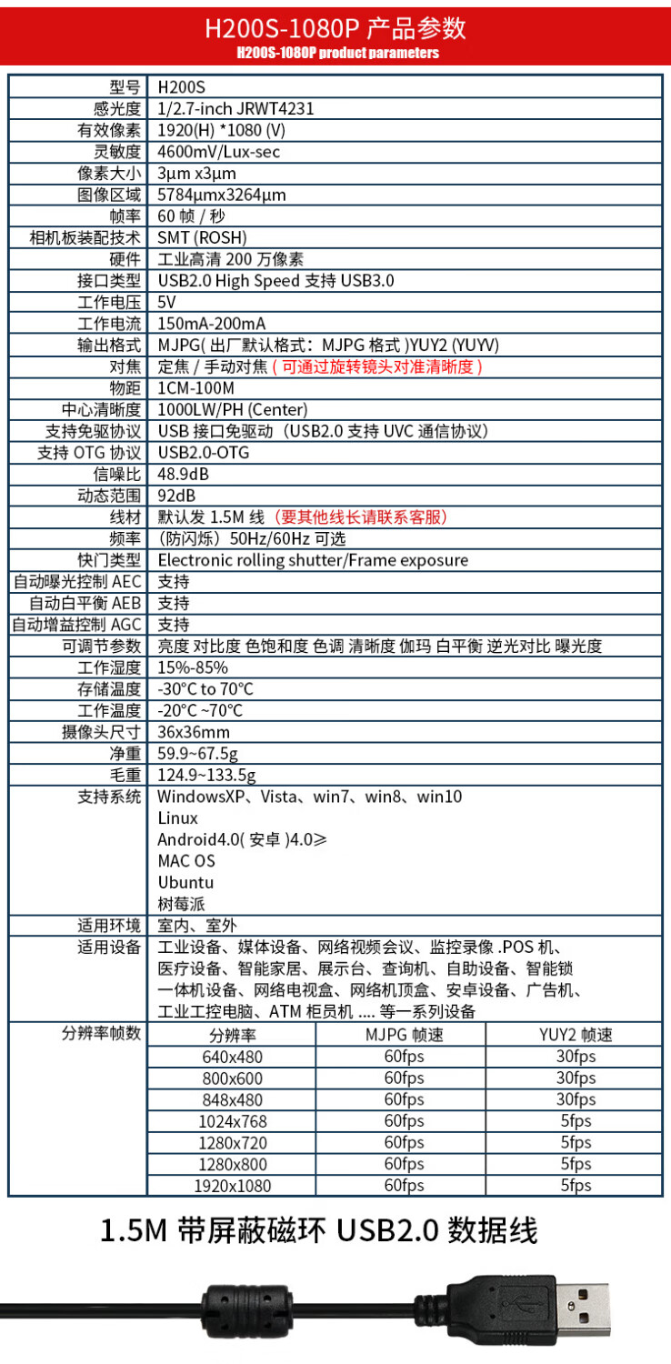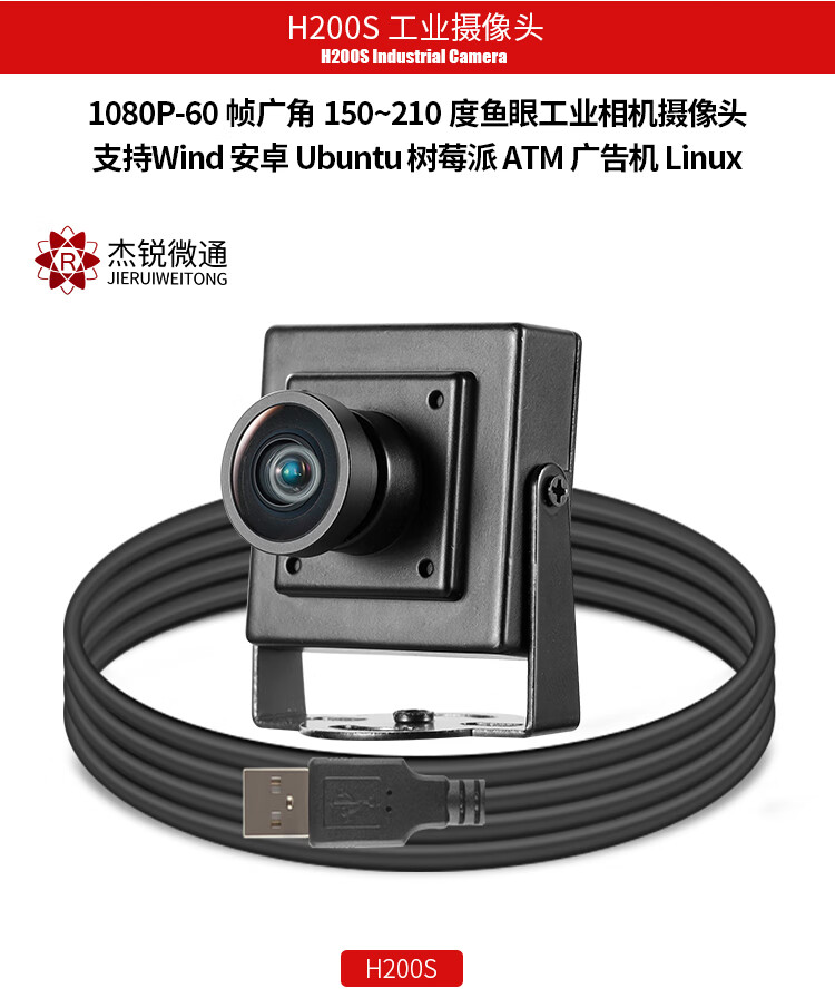 Jerry Microcom usb industrial camera 1080p wide angle 150 degrees 210 degrees fisheye 60 frames without smear linux Raspberry Pi Opencv computer face photo python driver-free H200S H200S-1.4mm fisheye 180 degrees