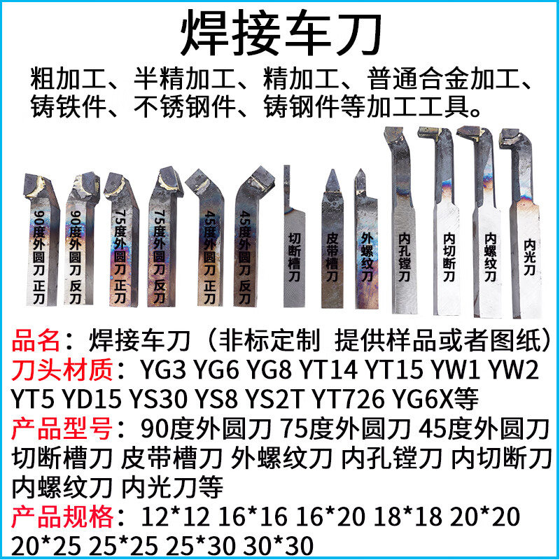 Lathe tool 90 degree external circular tool welding turning tool Zhuzhou Alloy YT5 YT15 YW2 lathe tool 16*20 YW120*20