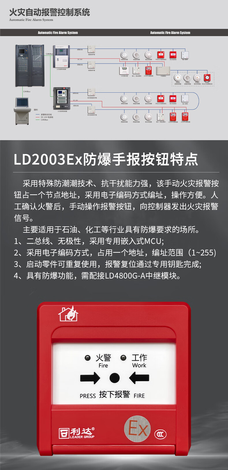 Lida explosion-proof manual alarm J-SA B-M-LD2003Ex explosion-proof manual fire alarm button 2000Ex J-SA B-M-LD2003Ex
