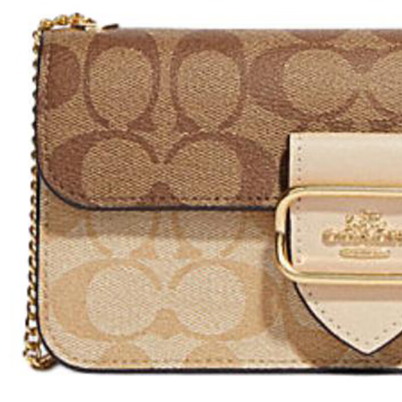 COACH Morgan 20 Classic Presbyopia Buckle Closure Canvas and Leather Shoulder Crossbody Bag Small Women's Brown Yellow Counter Gift Box