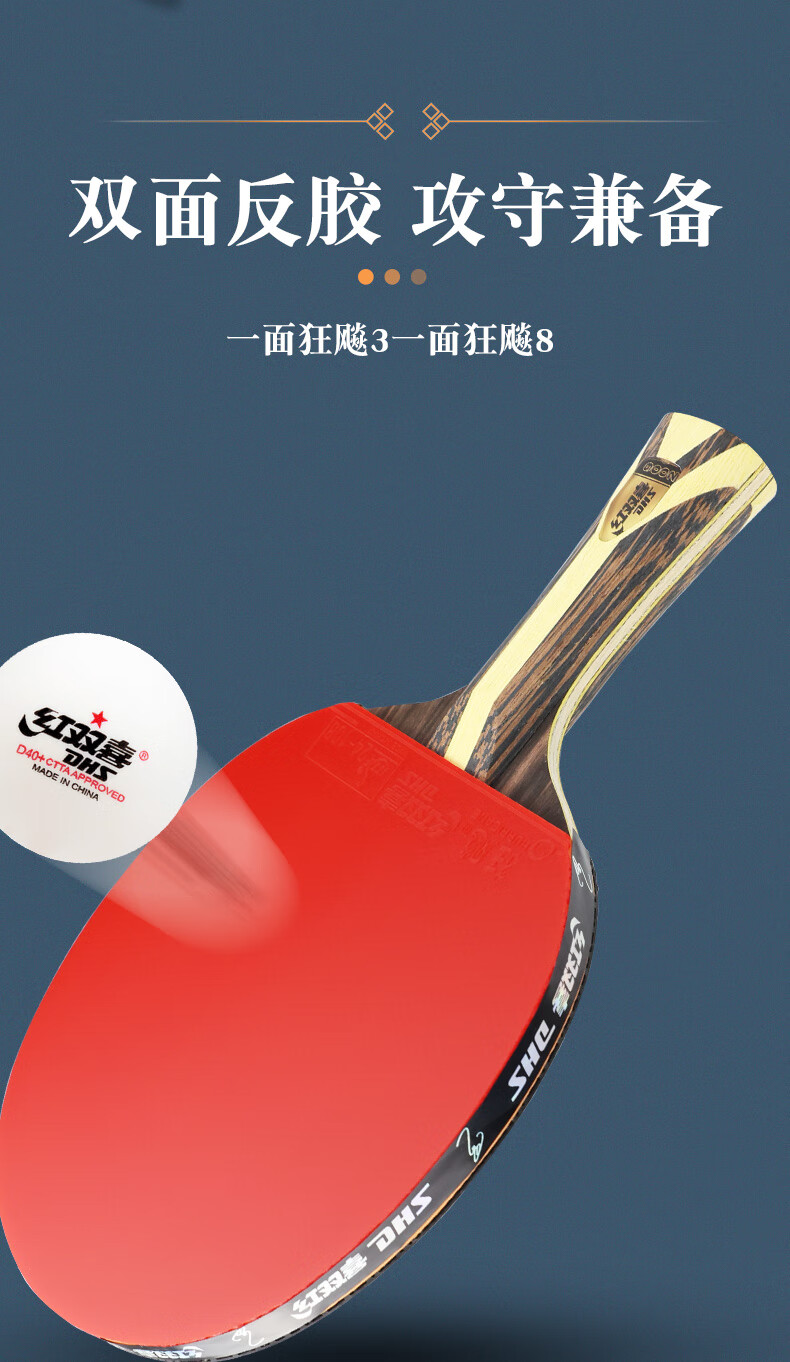 Double Happiness 9-star table tennis racket professional competition configuration carbon Malone nine-star Kuangbiao 8 horizontal and straight racket 9-star horizontal racket *get one star*6+gift package-SF Express