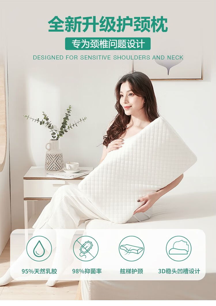 Wozhiwo Latex Pillow Cervical Vertebra Pillow to Help Sleep Natural Rubber Butterfly Pillow Side Sleeping Partition Neck Protective Latex Pillow (Pair)