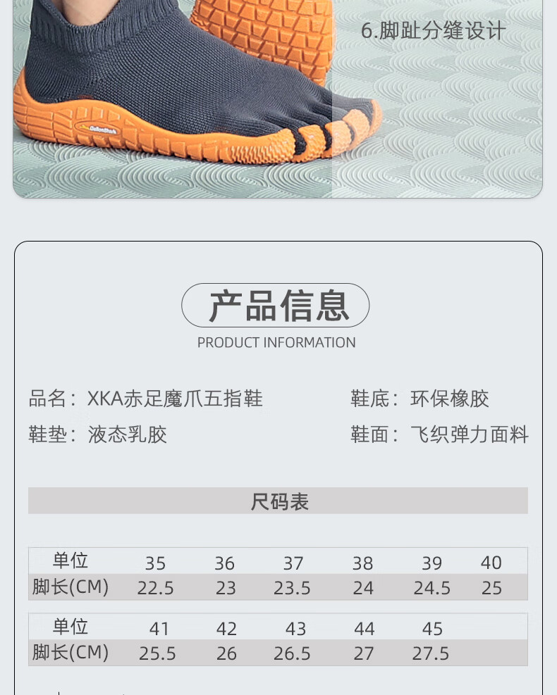 XKA five-finger shoes, ultra-light, silent, fitness training, non-slip, shock-absorbing, soft sole, split-toe correction, yoga skipping rope, coffee brown, five-finger split-toe shoes 37
