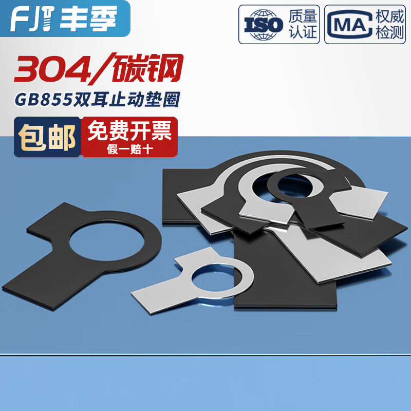Fengji GB855 304 stainless steel black A3 steel double-ear stop washer anti-return gasket locking piece anti-loosening retaining ring single ear M10 20 pieces 304 material
