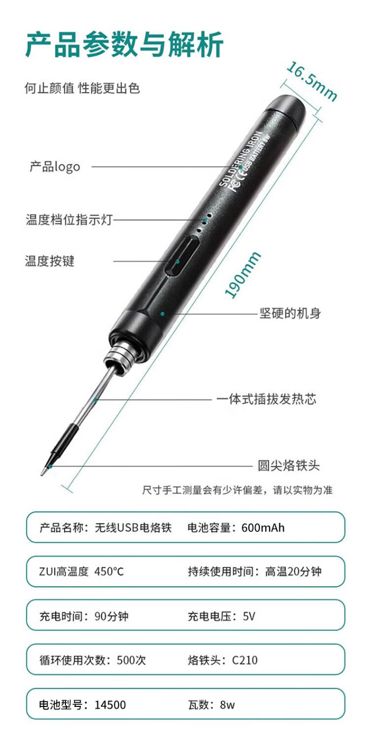 Lu Xianzi USB portable soldering iron smart charging welding pen soldering gun repair welding hot smoke code artifact USB portable model standard