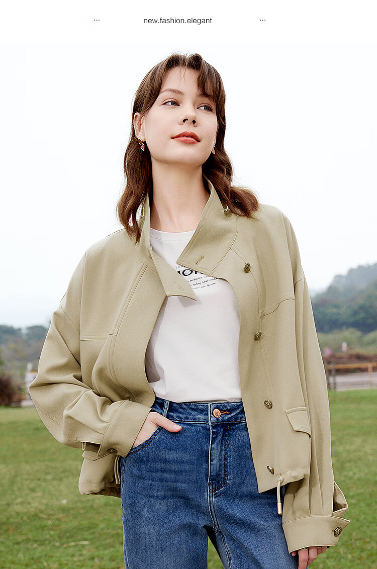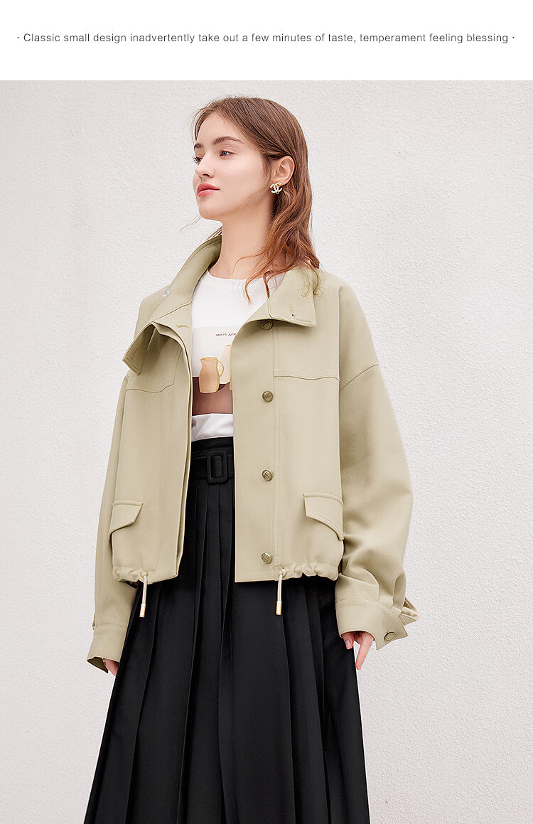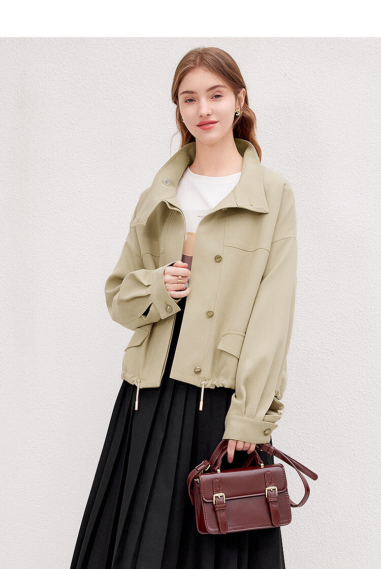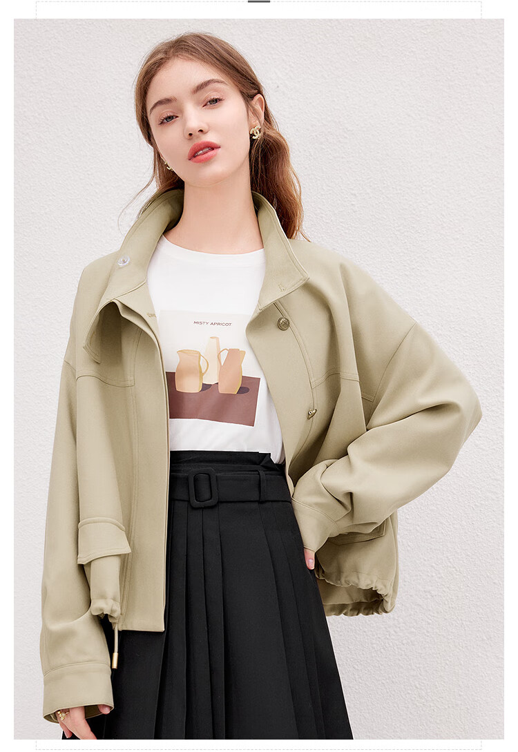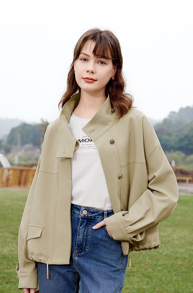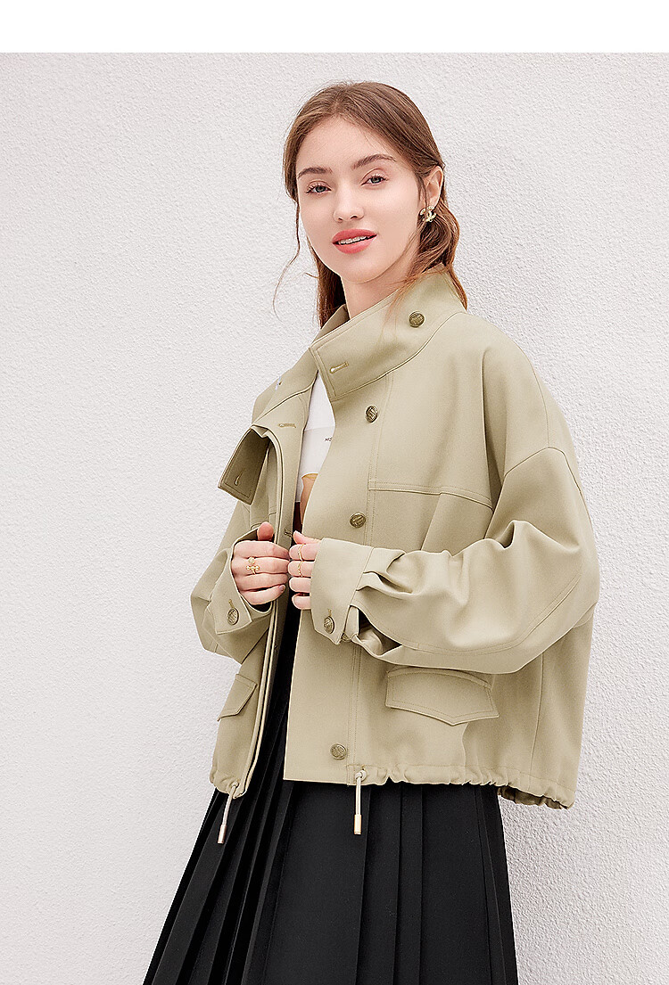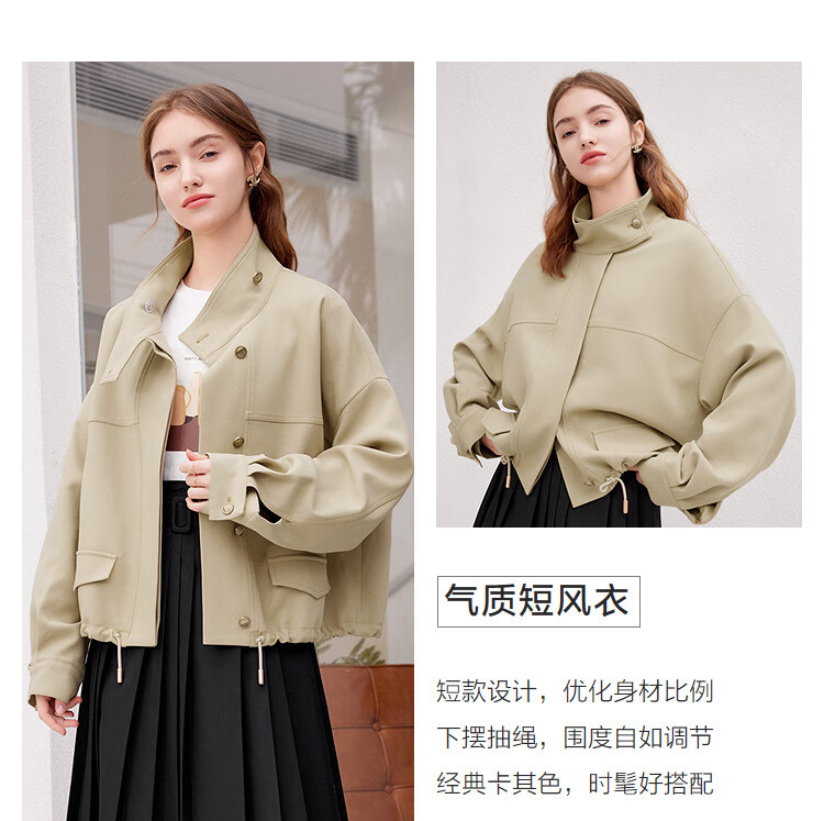 Betu Women's Spring New Style Windbreaker Temperament Stand Collar Short Drop Shoulder Sleeve Windbreaker Jacket Women 2401T47 Khaki L