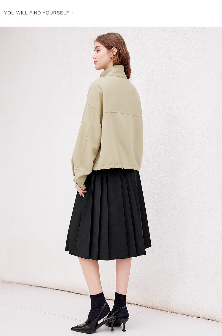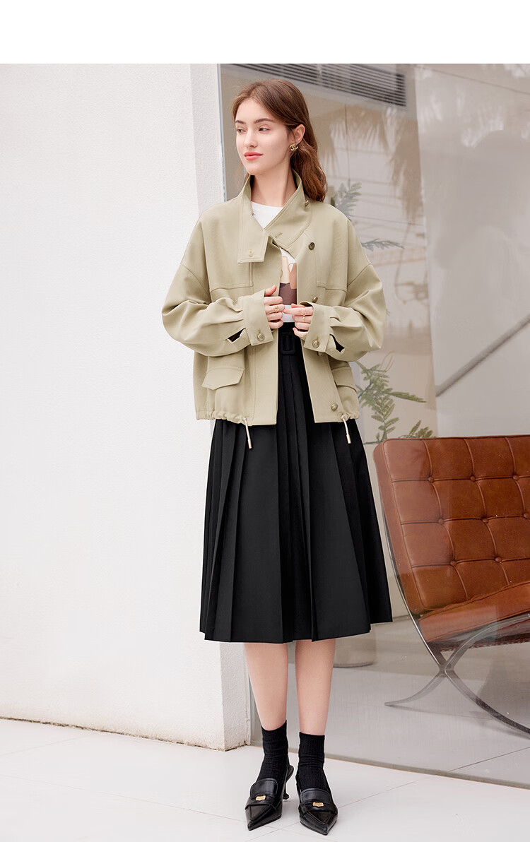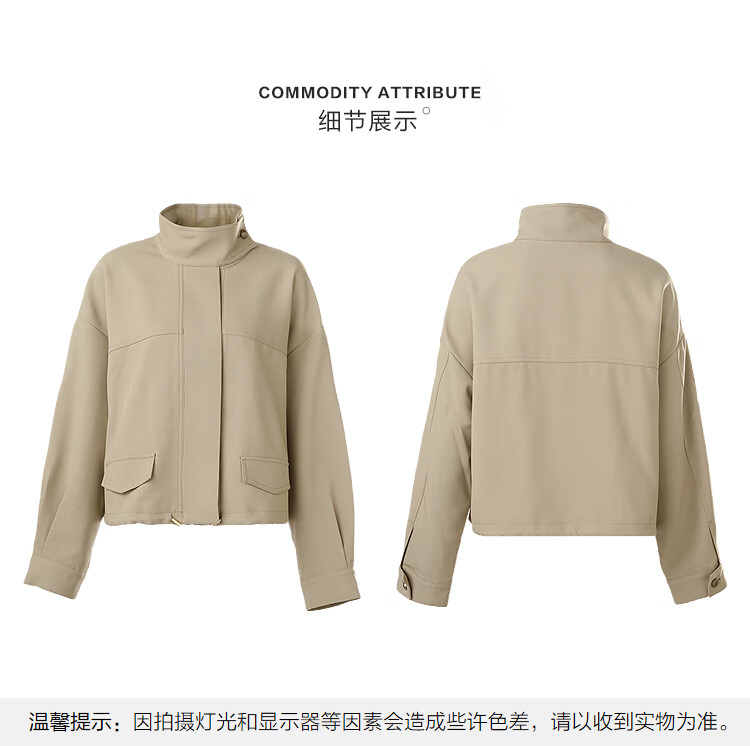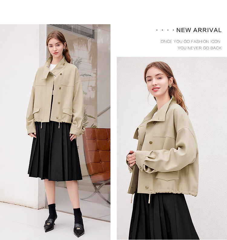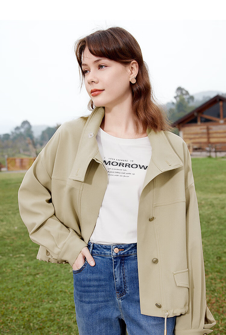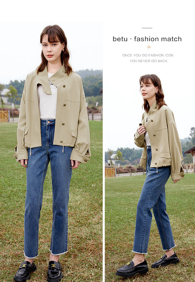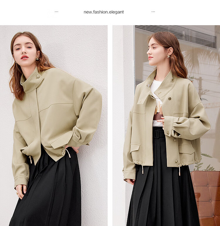 Betu Women's Spring New Style Windbreaker Temperament Stand Collar Short Drop Shoulder Sleeve Windbreaker Jacket Women 2401T47 Khaki L