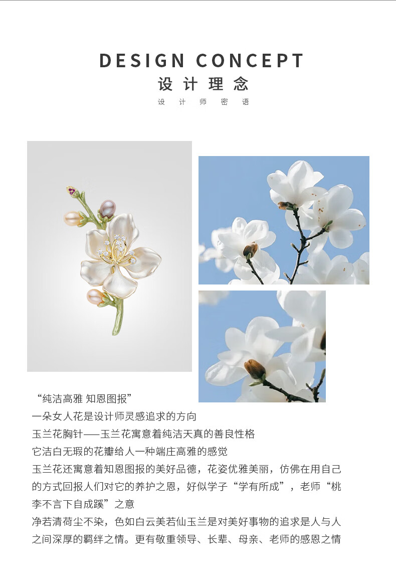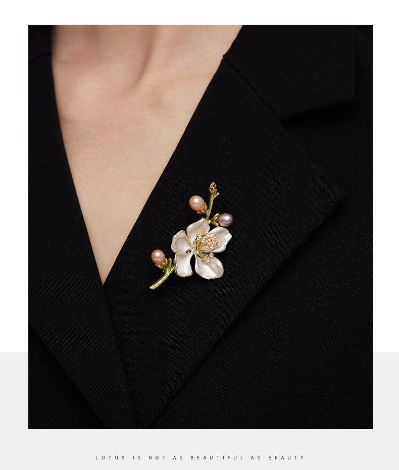 Tanghou genuine natural white magnolia brooch, high-end women's freshwater pearl luxury brooch, natural white shell magnolia - free official identification certificate