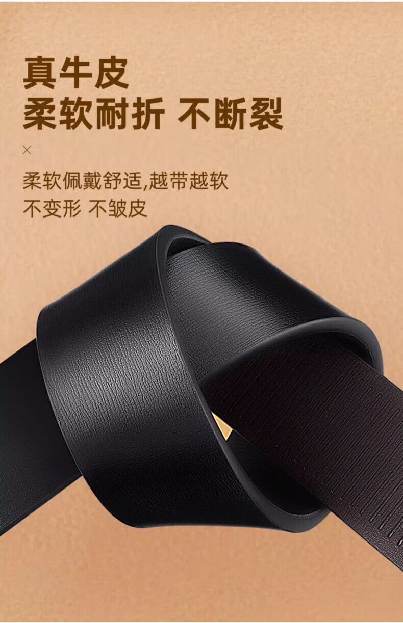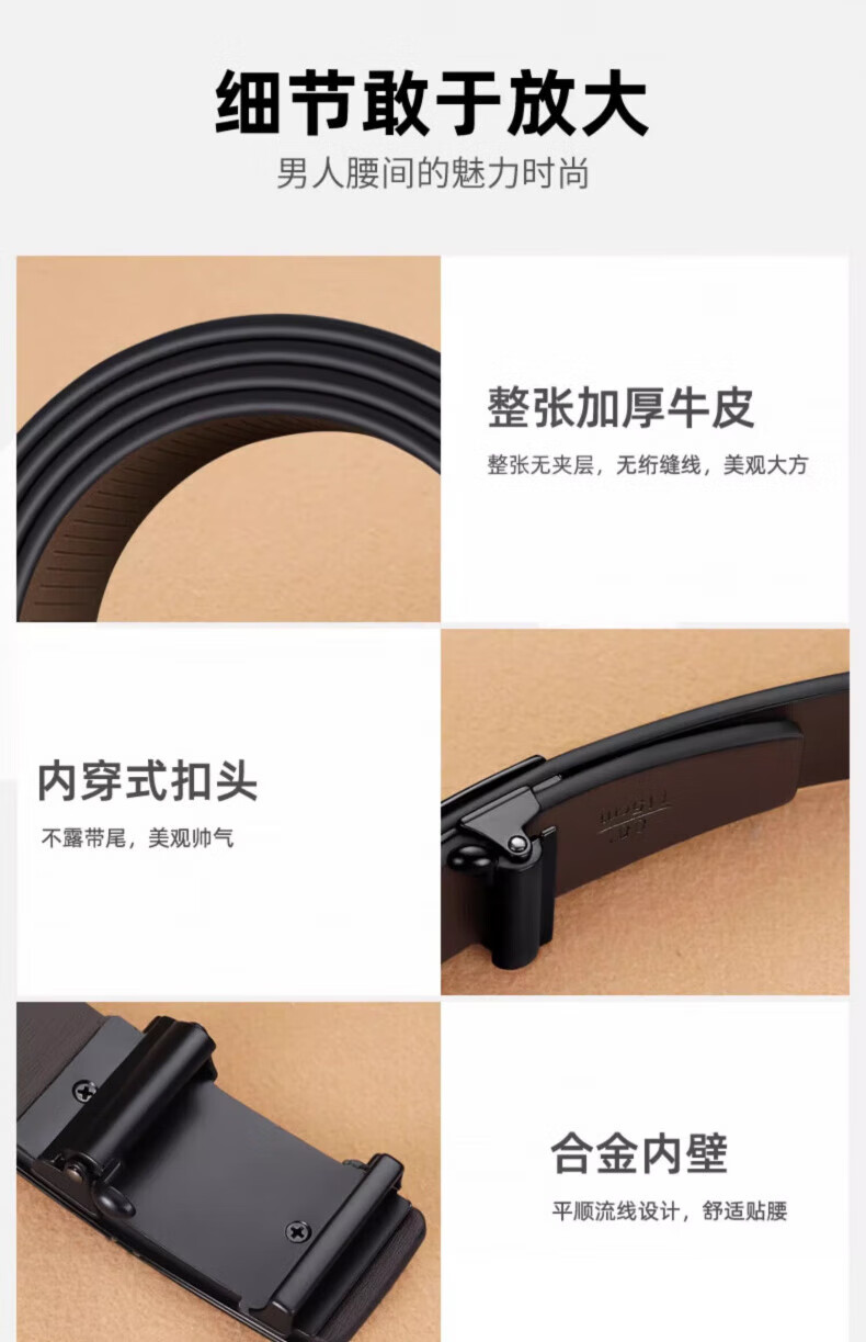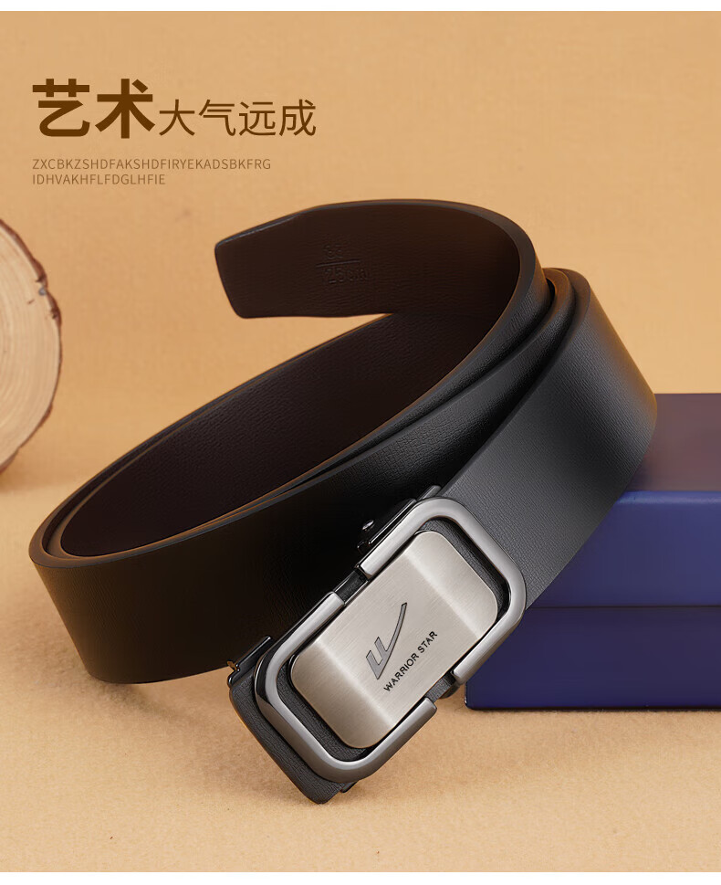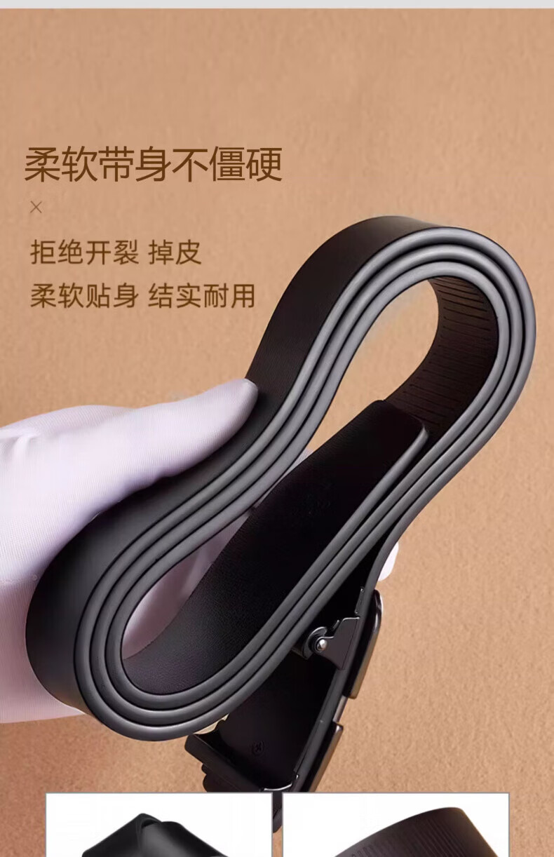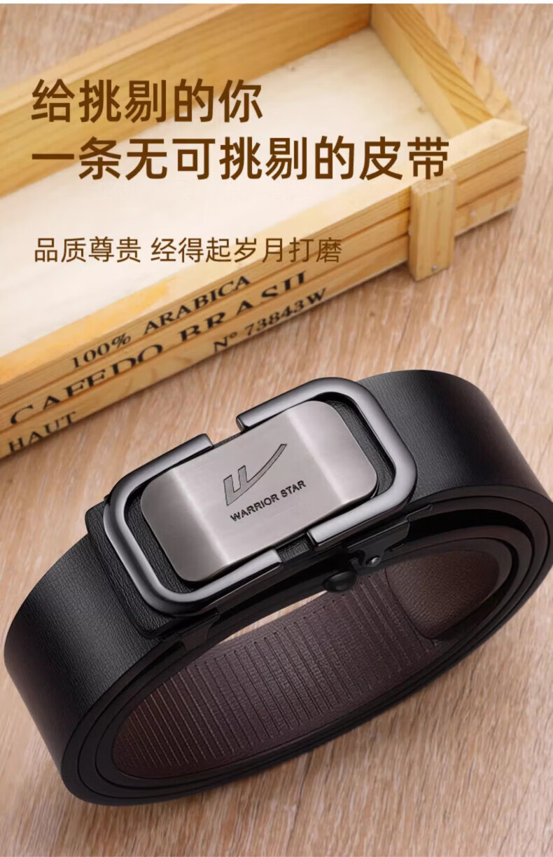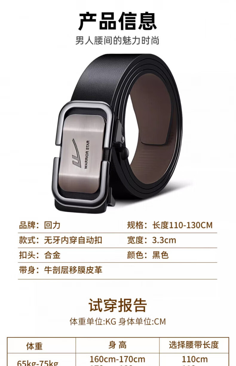 Warrior belt, men's genuine cowhide trouser belt, toothless pure automatic buckle, inner wear style, business casual trouser belt for young and middle-aged people, versatile, classic black, upgraded inner wear without exposing the tail