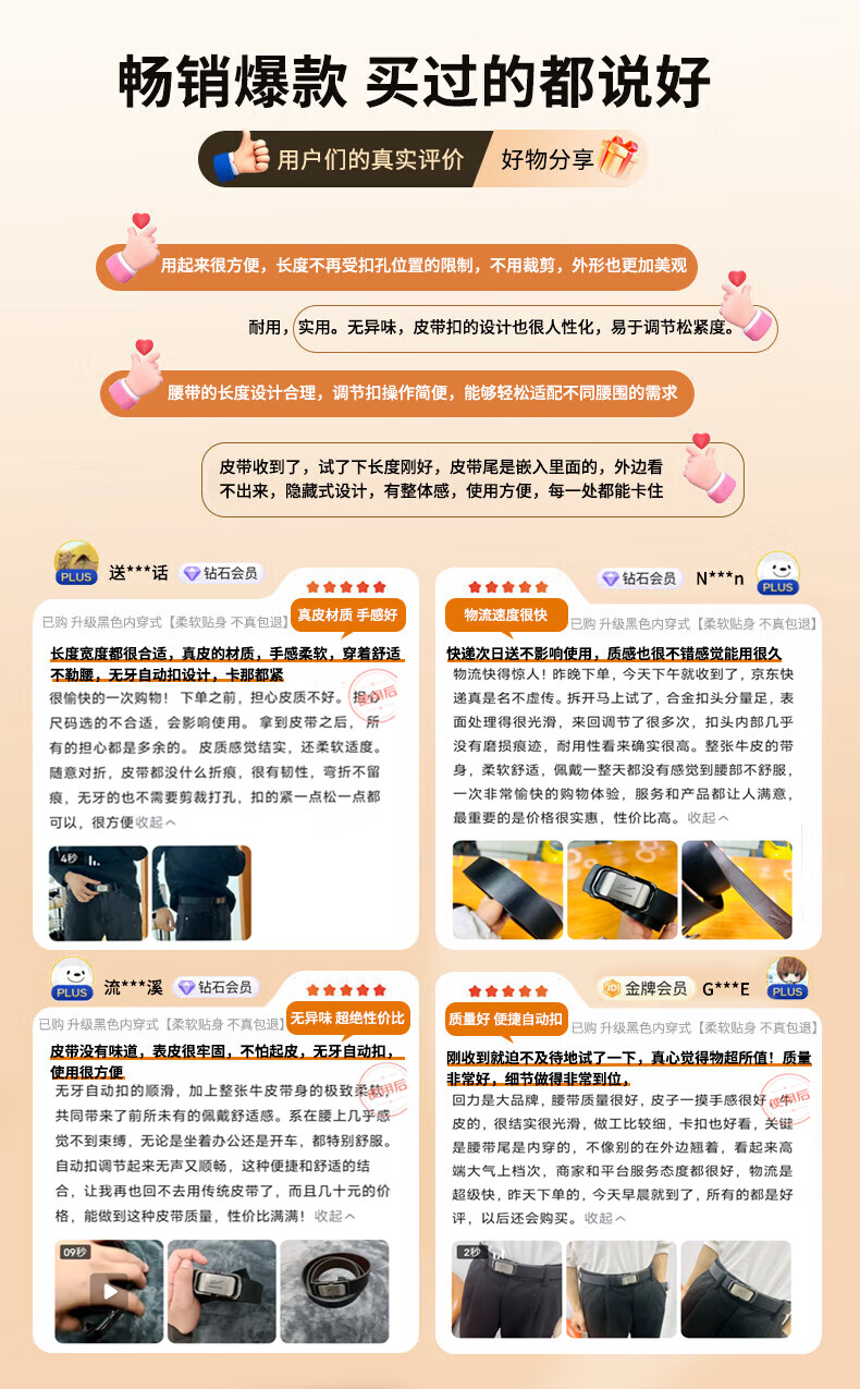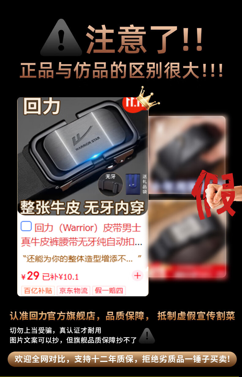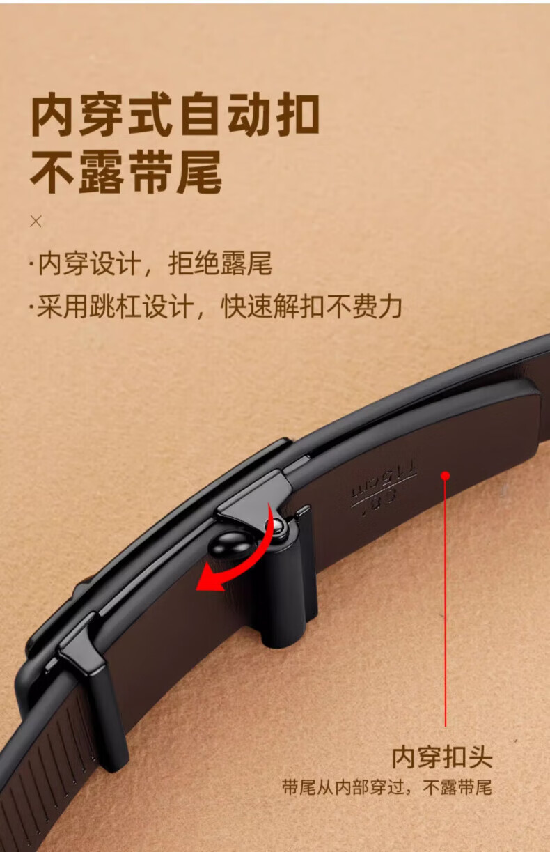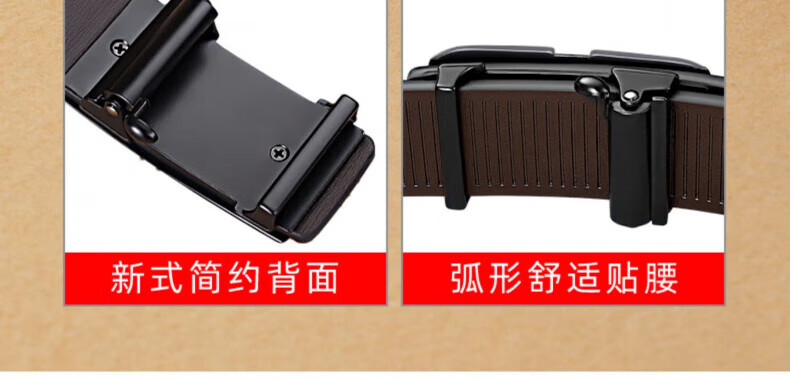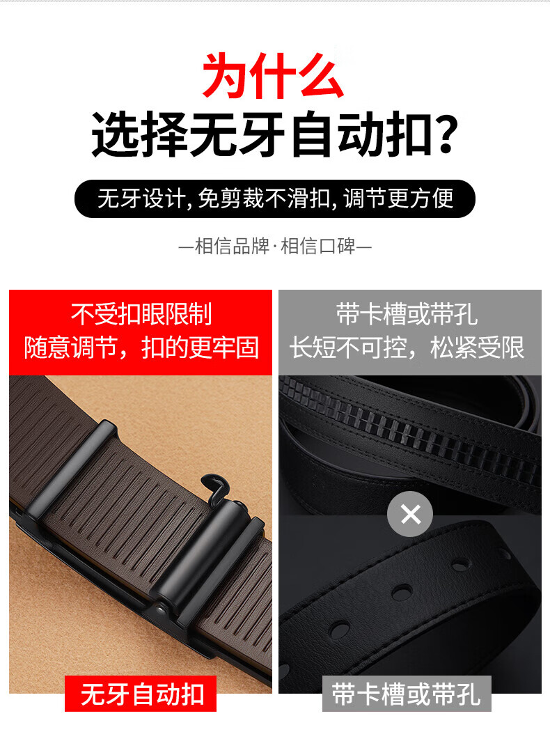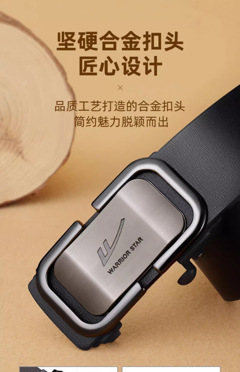 Warrior belt, men's genuine cowhide trouser belt, toothless pure automatic buckle, inner wear style, business casual trouser belt for young and middle-aged people, versatile, classic black, upgraded inner wear without exposing the tail