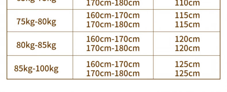 China (cm) 160-165/84-86 165-170 / 88-90 167-172 / 92-96 168-173 / 98-102 170-176 / 106-110