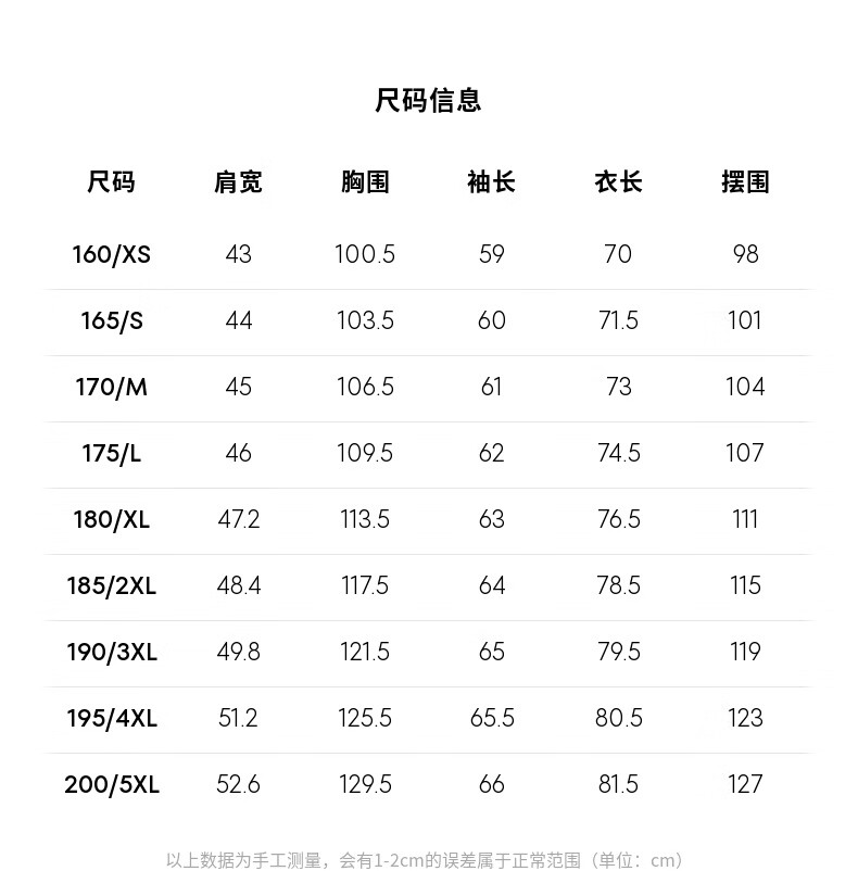 China (cm) 165 / 88-90 170 / 96-98 175 / 108-110 180 / 118-122 185 / 126-130