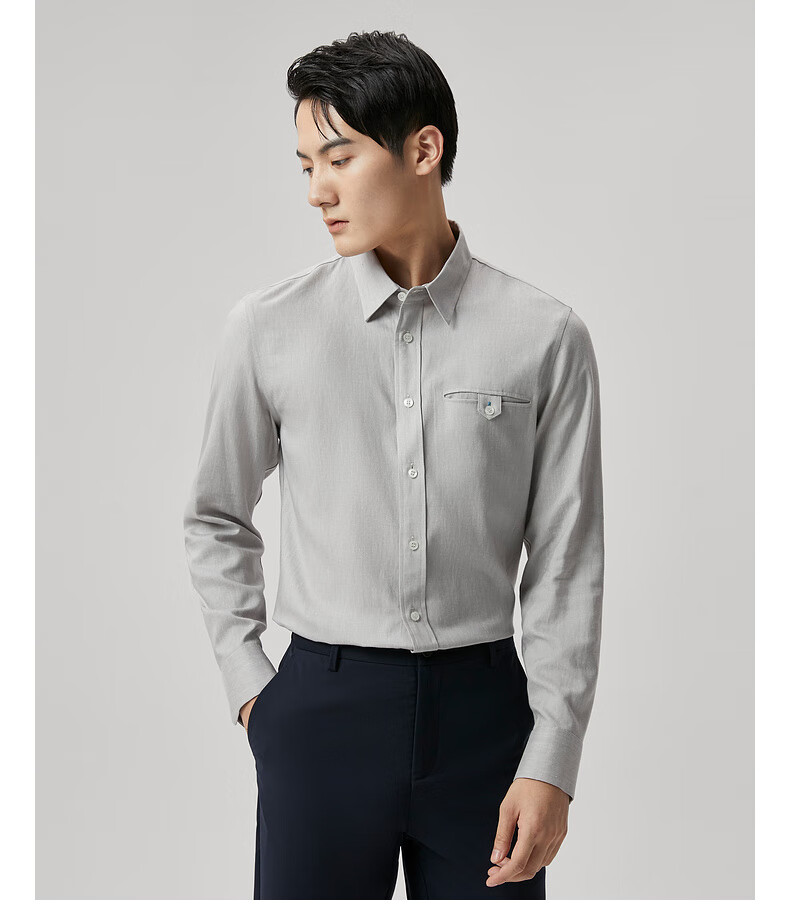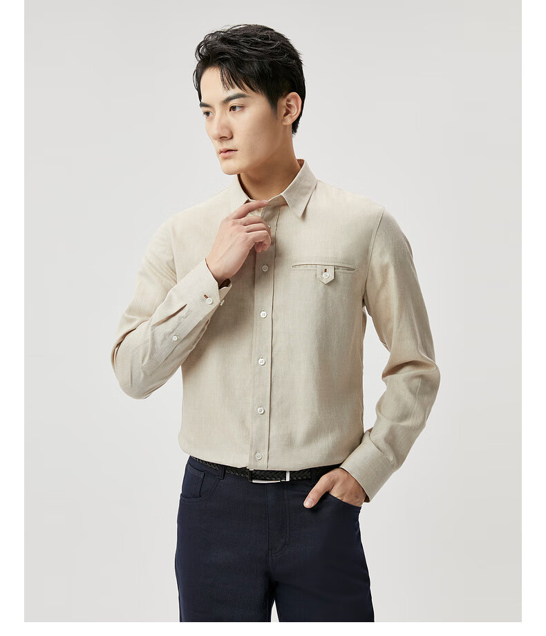 劲霸男装(K-Boxing)商务休闲纯色合身干练春秋长袖衬衫男|BCCT1103 奶咖 XL