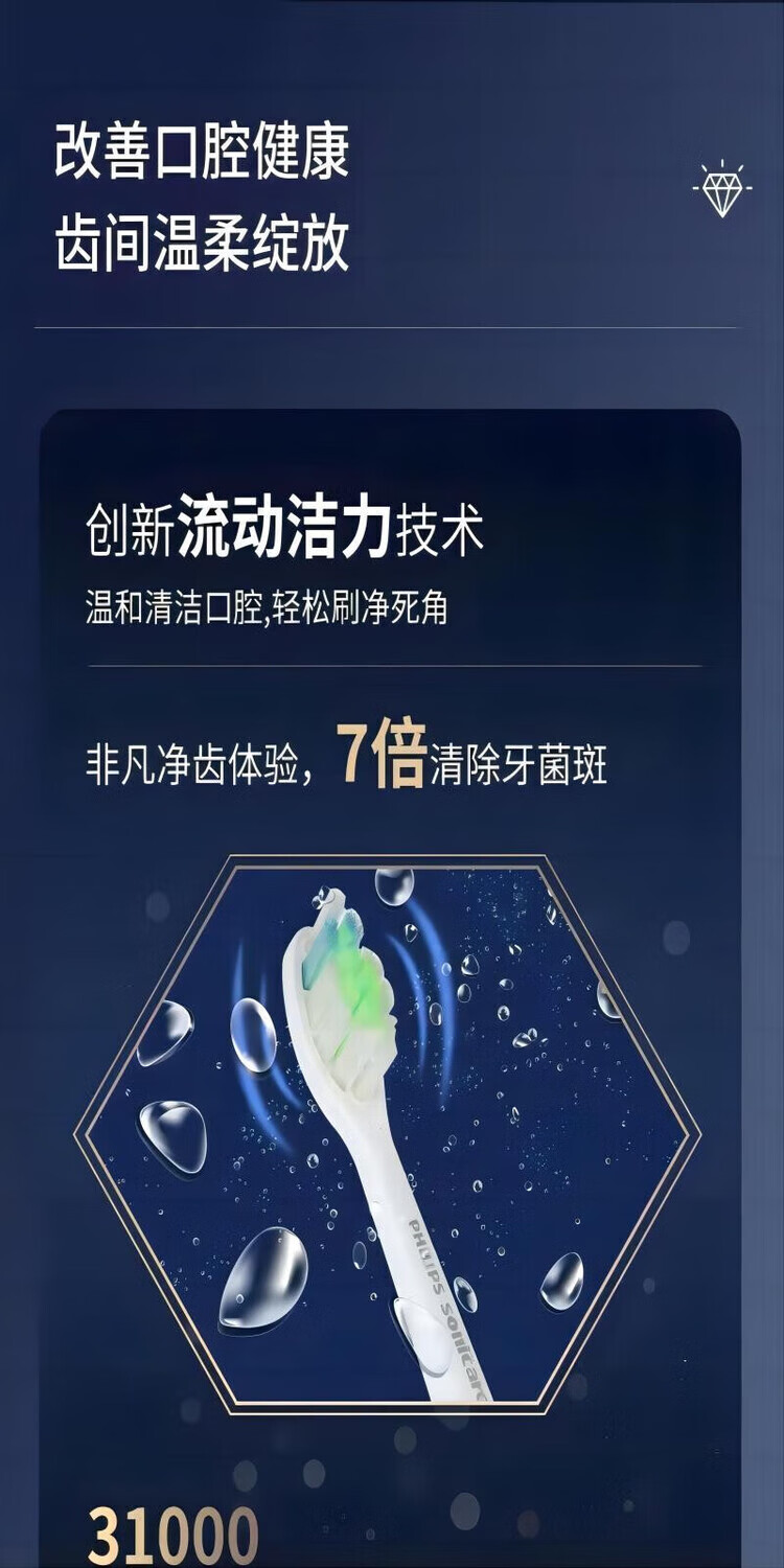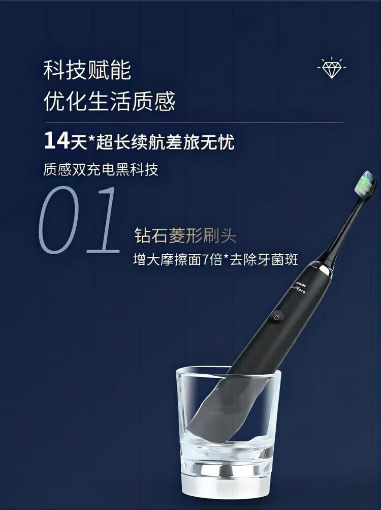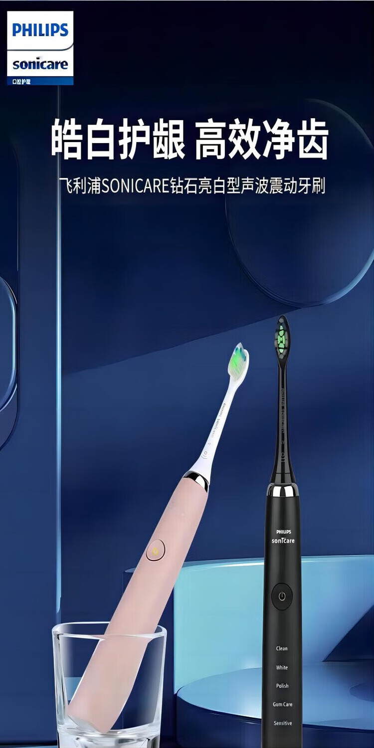 Philips HX9360 high-end flagship sonic vibration electric toothbrush gum protection diamond series home personal care single host HX9360 pink