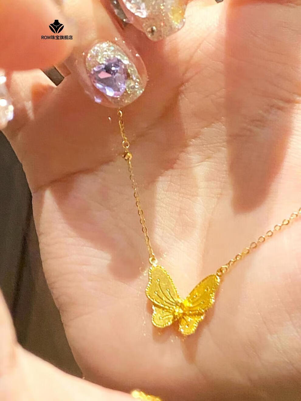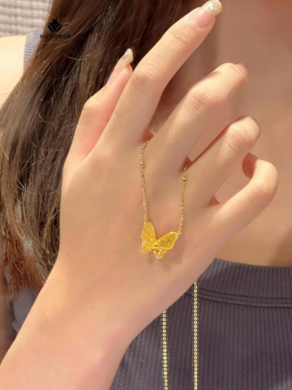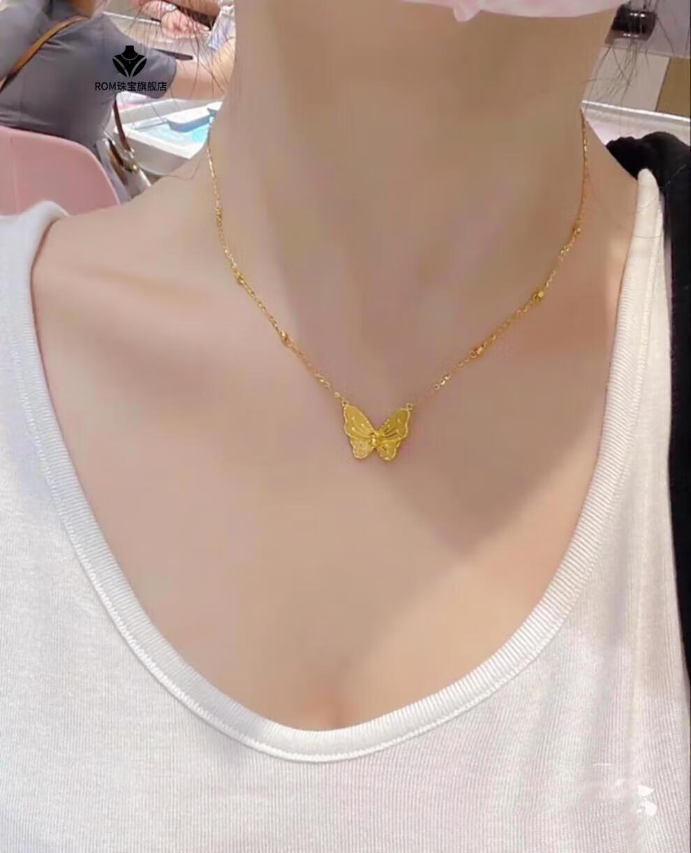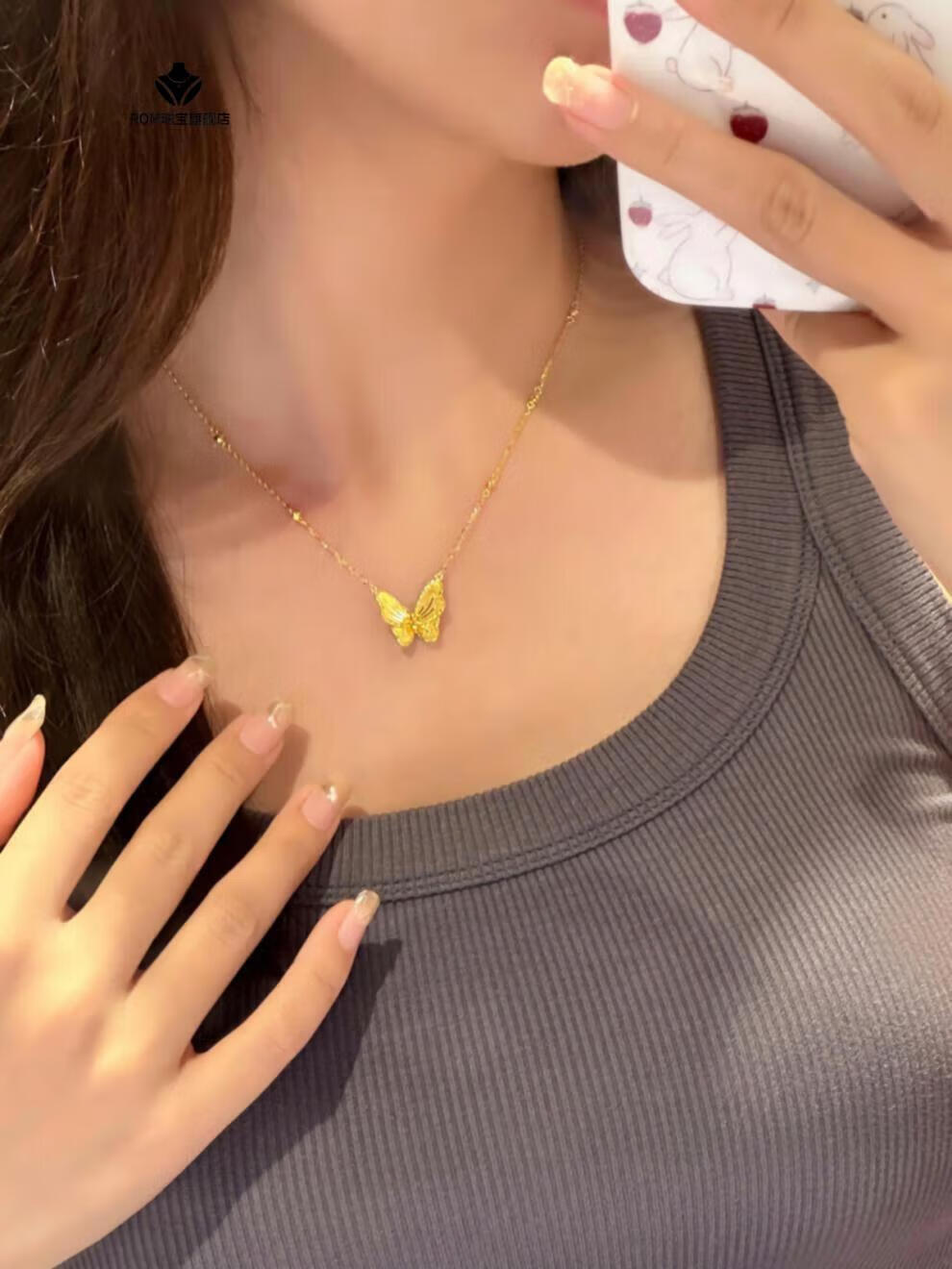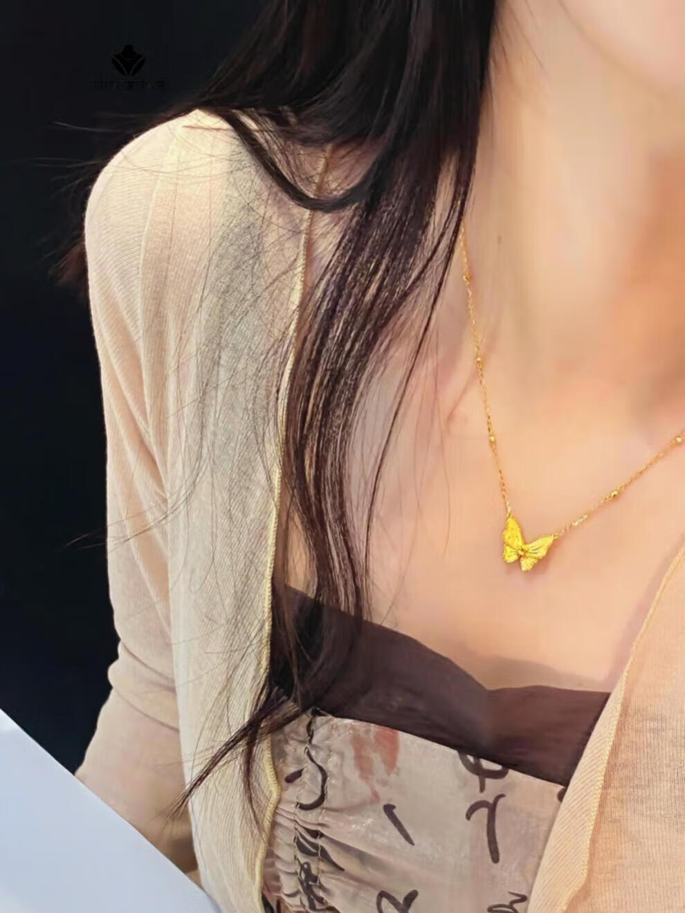 Fat Donglai's same style 18K gold butterfly pendant, Tiao Tai width necklace, Silver Flower Moon Festival, new clavicle chain, Yellow foot knot, Tiao Tai width butterfly necklace, Flower Moon Festival
