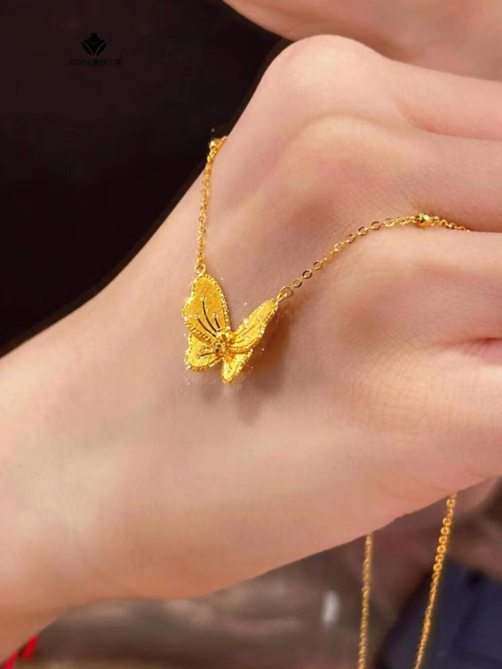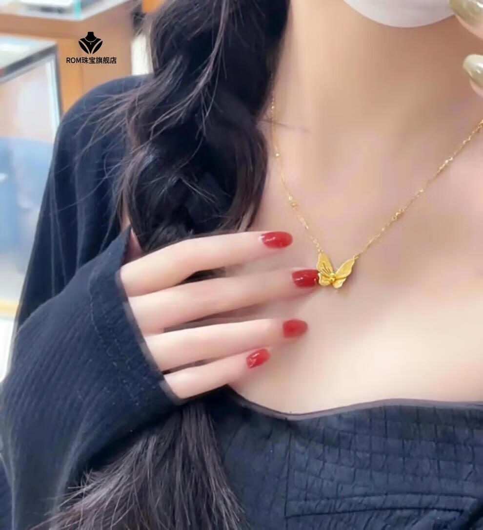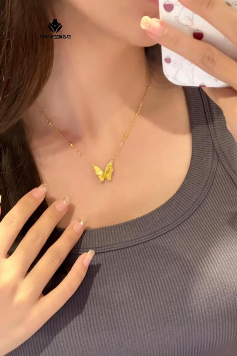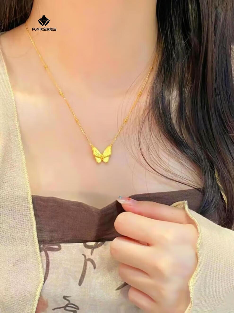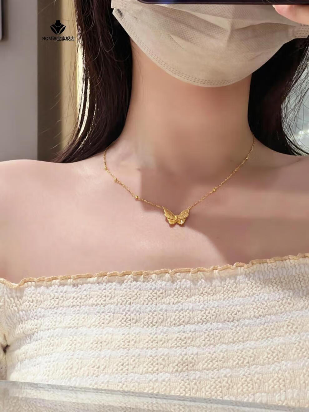 Fat Donglai's same style 18K gold butterfly pendant, Tiao Tai width necklace, Silver Flower Moon Festival, new clavicle chain, Yellow foot knot, Tiao Tai width butterfly necklace, Flower Moon Festival