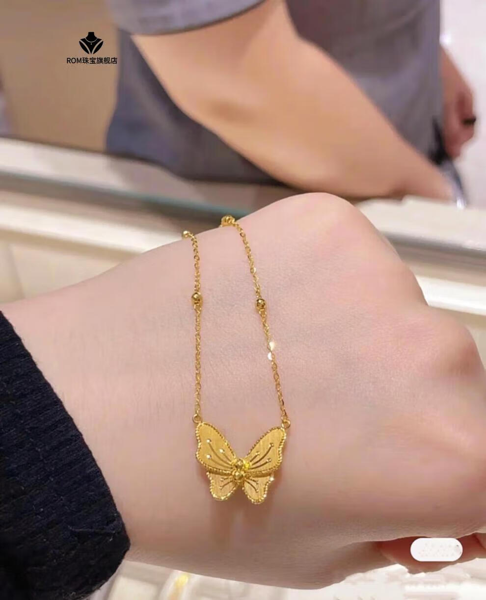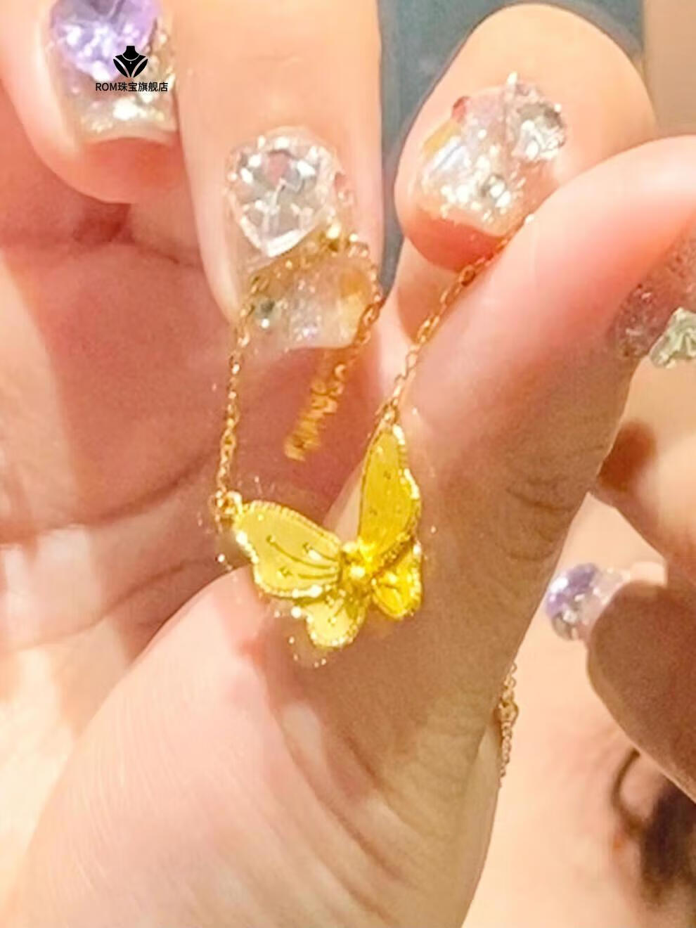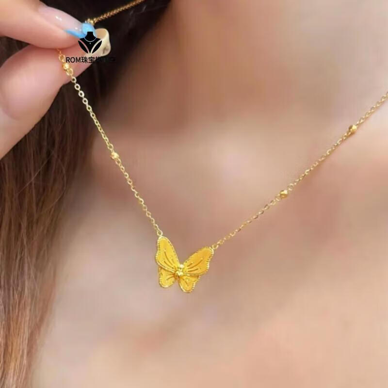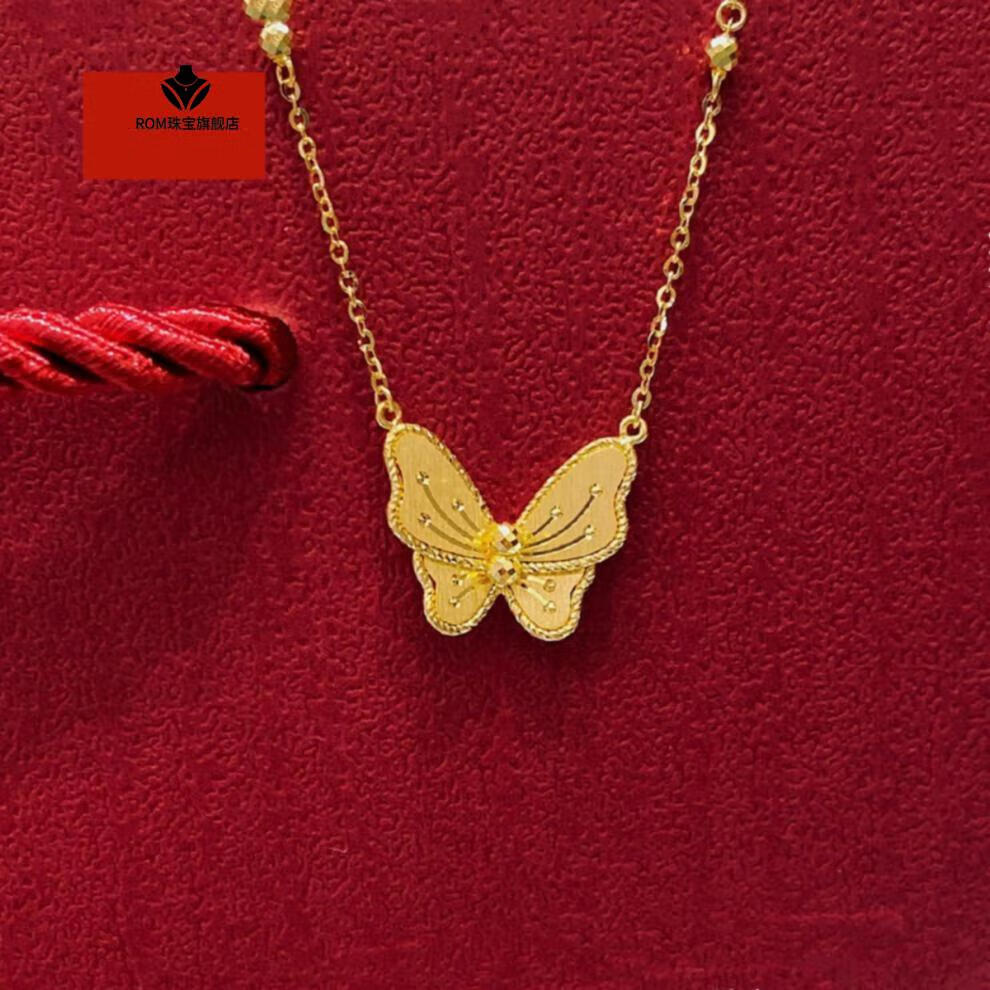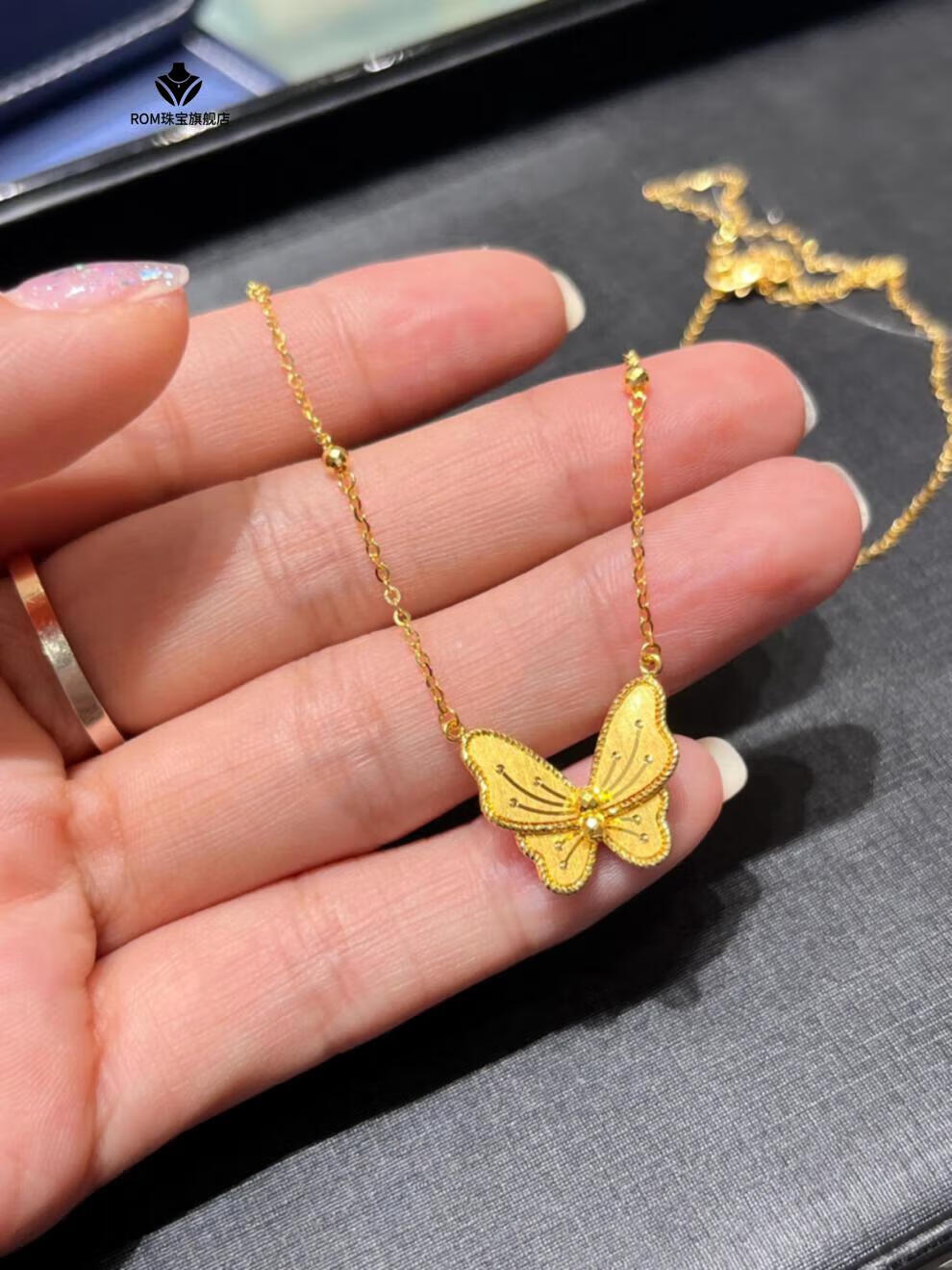 Fat Donglai's same style 18K gold butterfly pendant, Tiao Tai width necklace, Silver Flower Moon Festival, new clavicle chain, Yellow foot knot, Tiao Tai width butterfly necklace, Flower Moon Festival