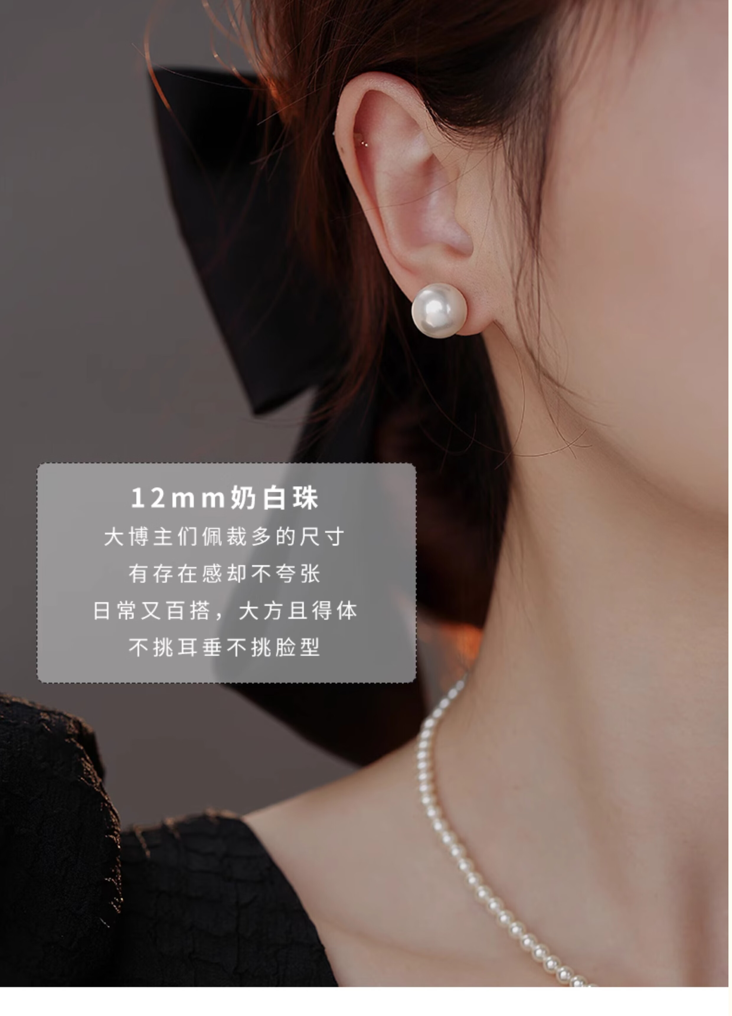 DAISY DREAM Shijia Pearl Earrings No Piercing Ear Clips Feminine Retro 2025 New Large Pearl Earrings 10mm Shijia Pearl Ear Clips