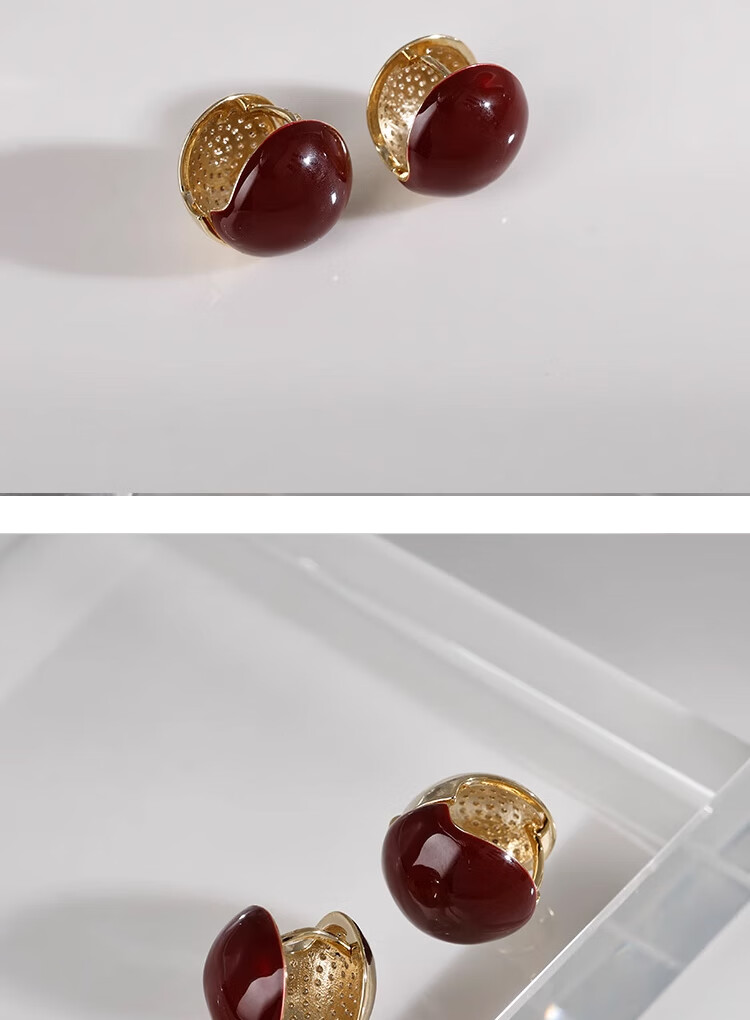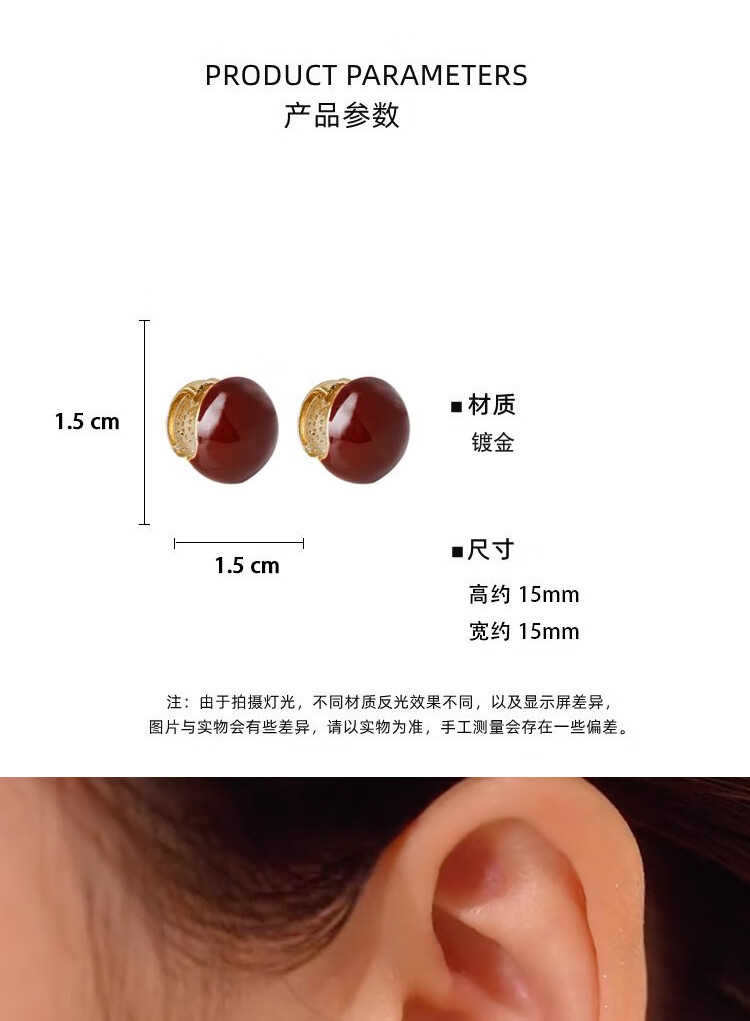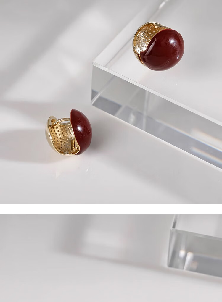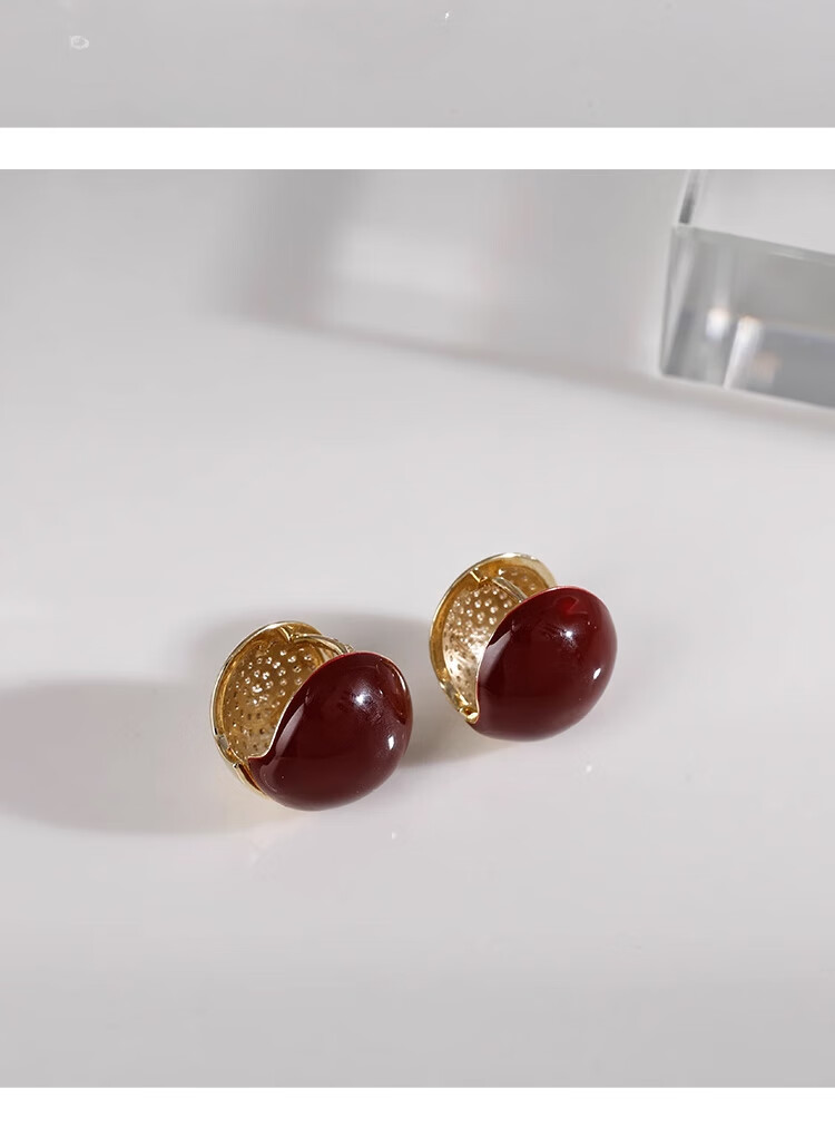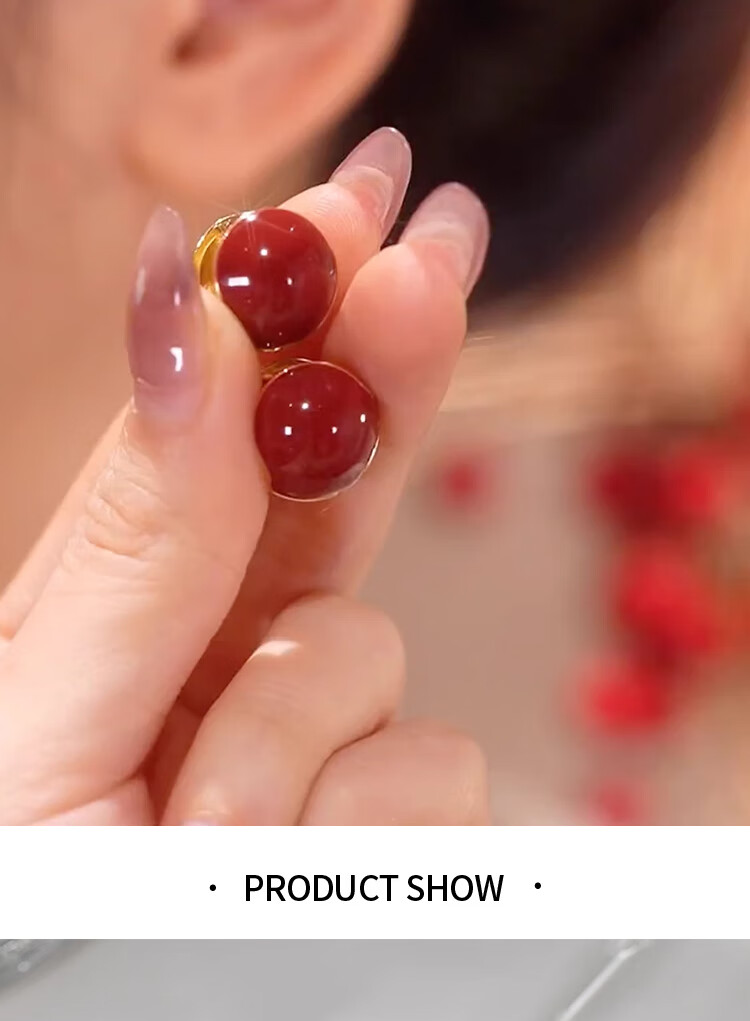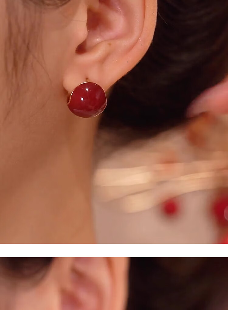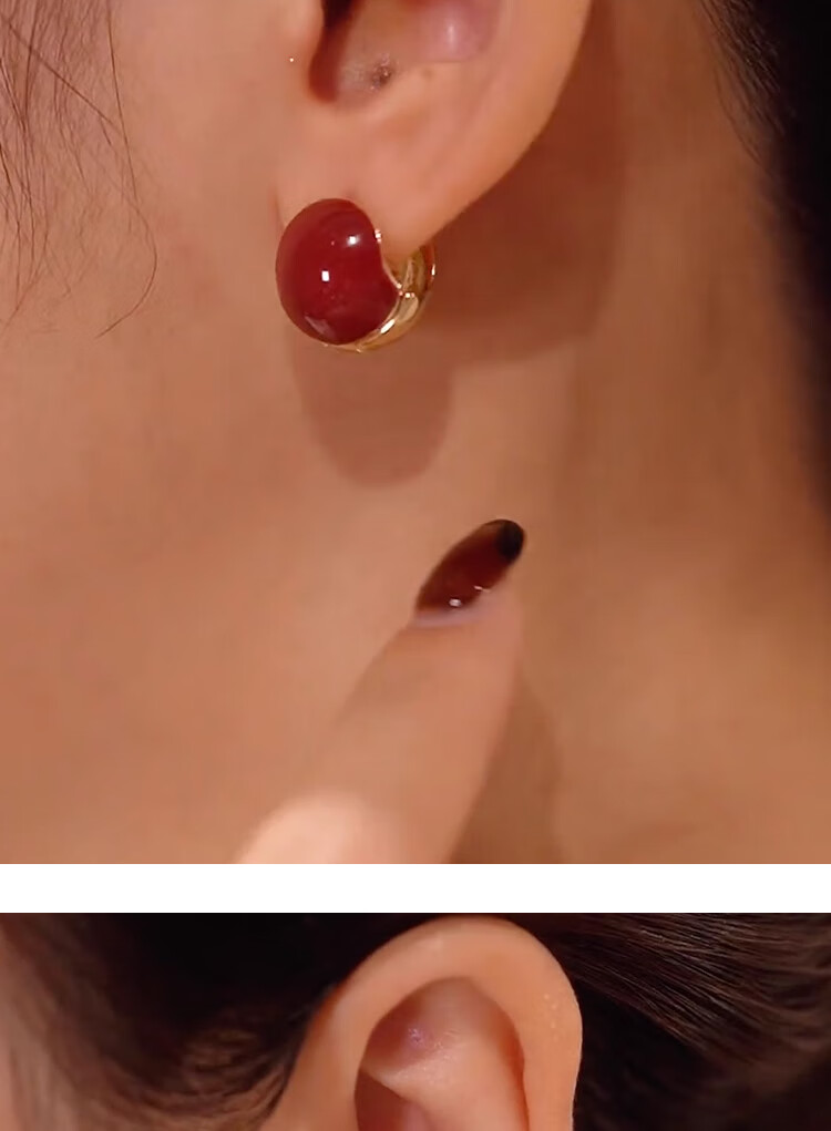 Mansheng red bean earrings for women, retro Hong Kong style red earrings, no piercing, no punching, mosquito coil ear clip, ear buckle birthday gift, a pair of lovesick red bean earrings